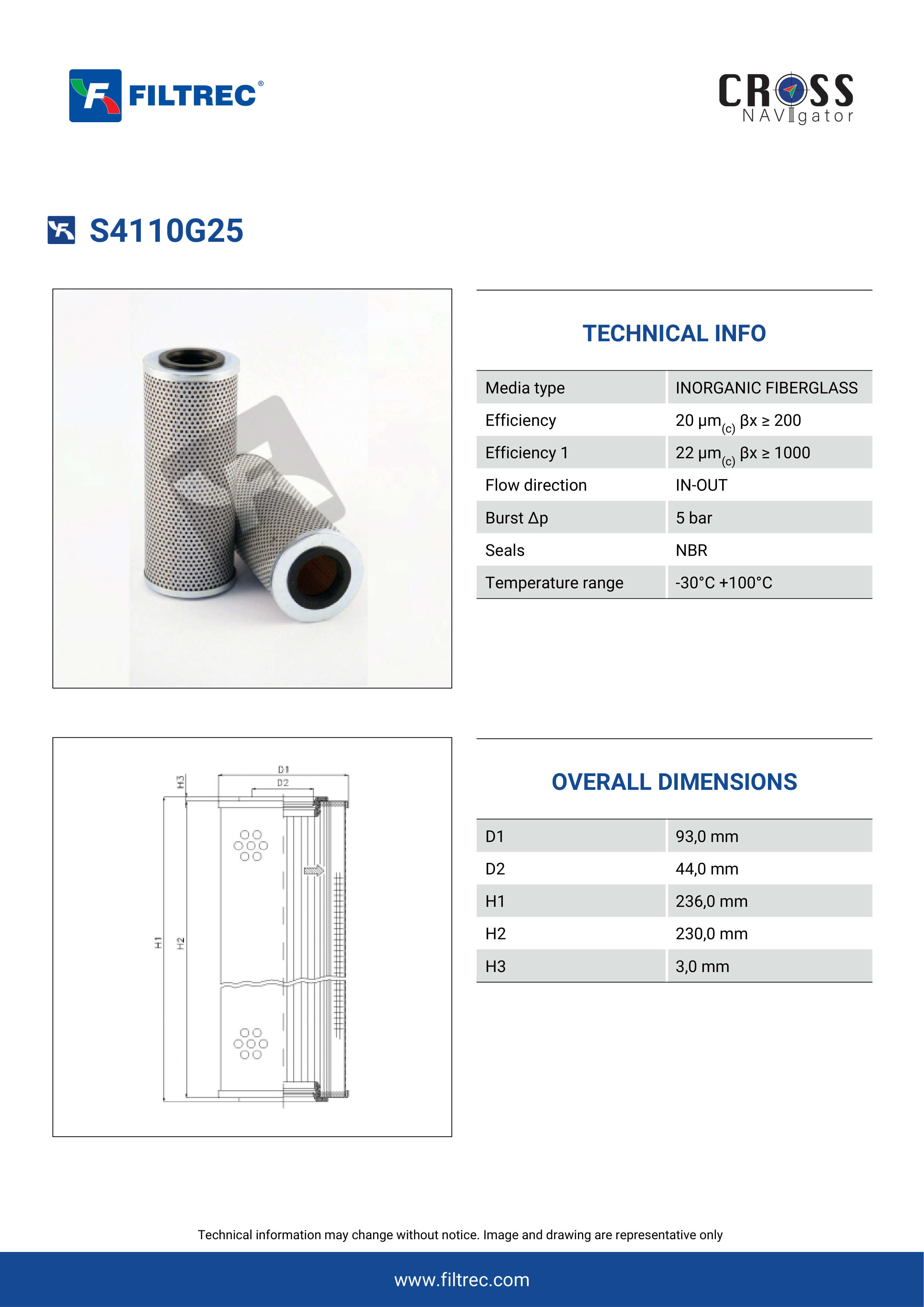 Genuine Filtrec S4110G25. This Filtrec element is designed to meet or exceed the quality and performance of brand OEM’s ensuring superior filtration performance and long-lasting durability.