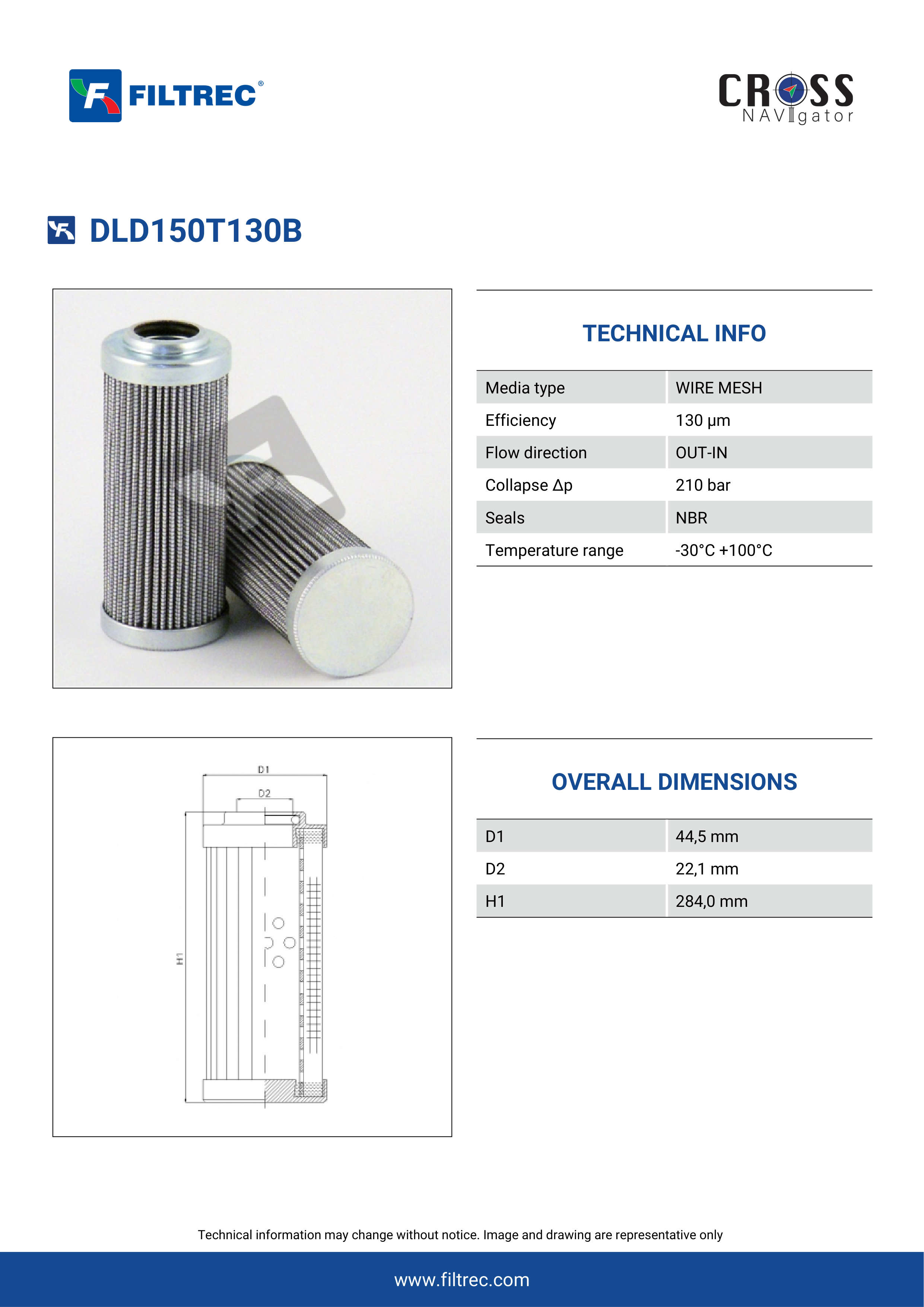 Genuine Filtrec DLD150T130B. This Filtrec element is designed to meet or exceed the quality and performance of brand OEM’s ensuring superior filtration performance and long-lasting durability.