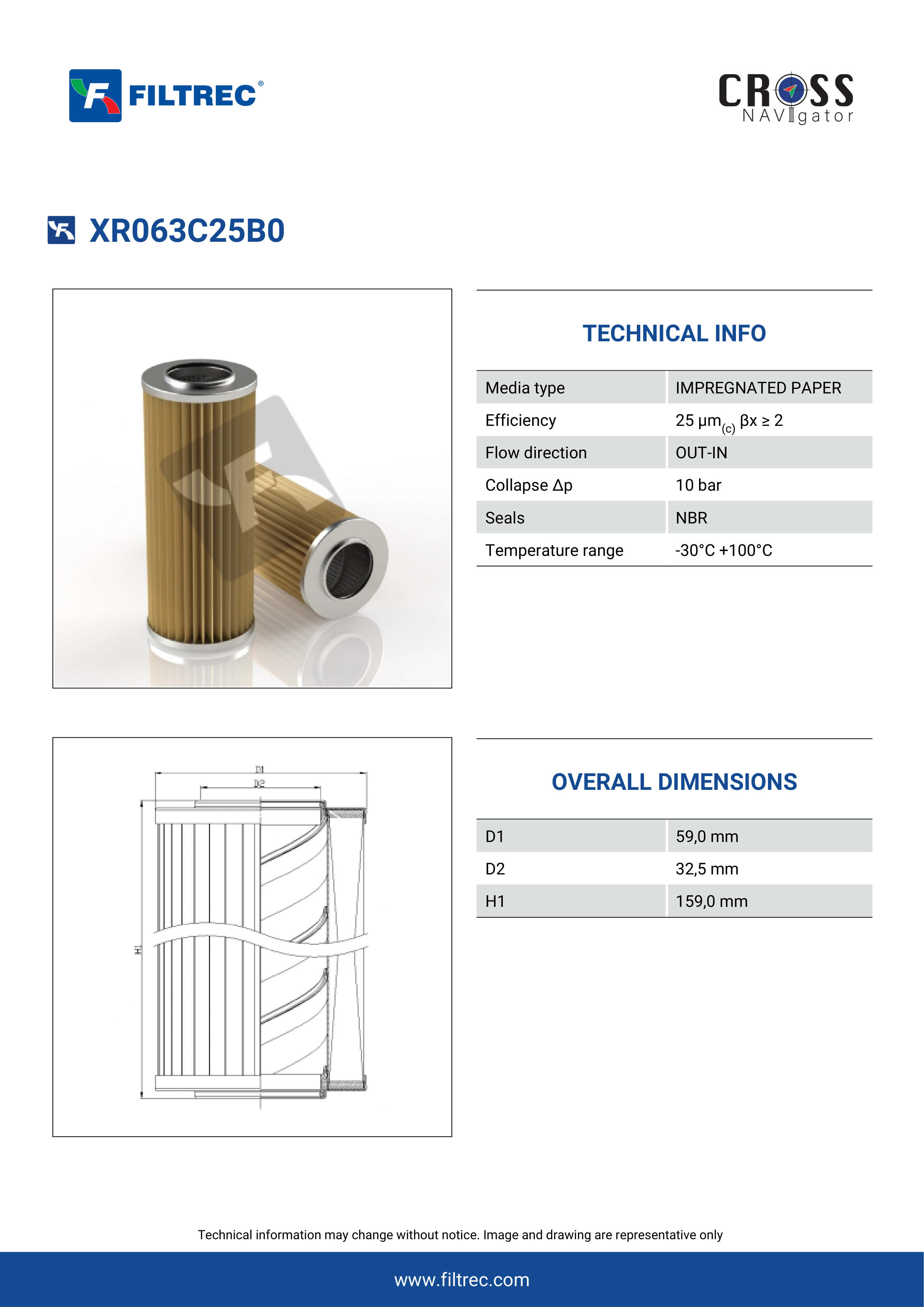 Genuine Filtrec XR063C25B0. This Filtrec element is designed to meet or exceed the quality and performance of brand OEM’s ensuring superior filtration performance and long-lasting durability.