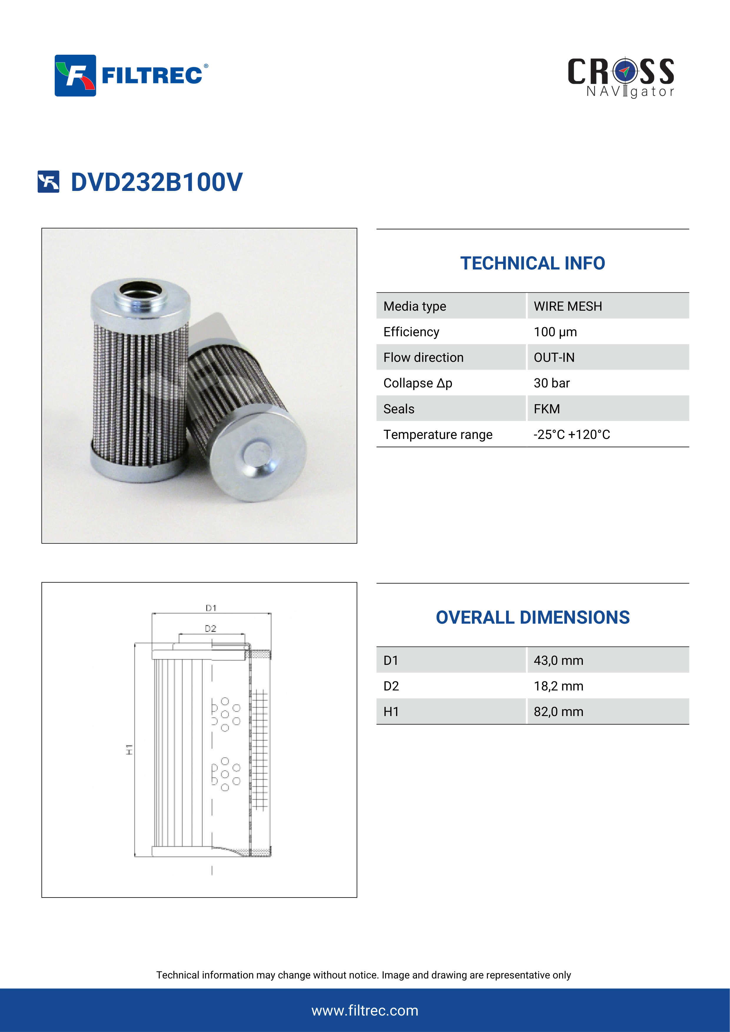 The efficiency of the element is shown using the Micron (µ) and Beta (β) ratings. The micron rating indicates the size of the particle being filtered and the beta rating the efficiency, calculated as 1/β.