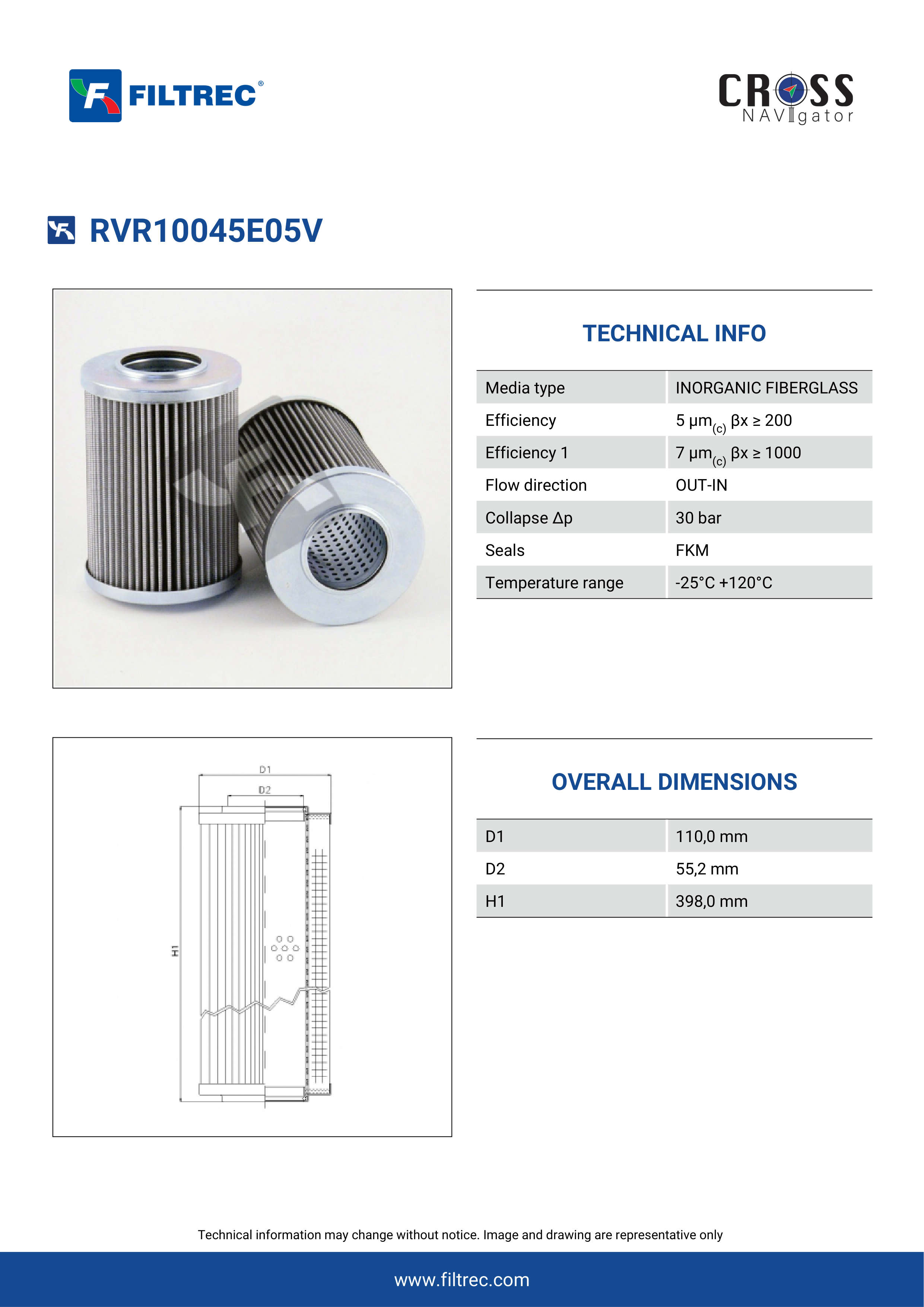 The efficiency of the element is shown using the Micron (µ) and Beta (β) ratings. The micron rating indicates the size of the particle being filtered and the beta rating the efficiency, calculated as 1/β.