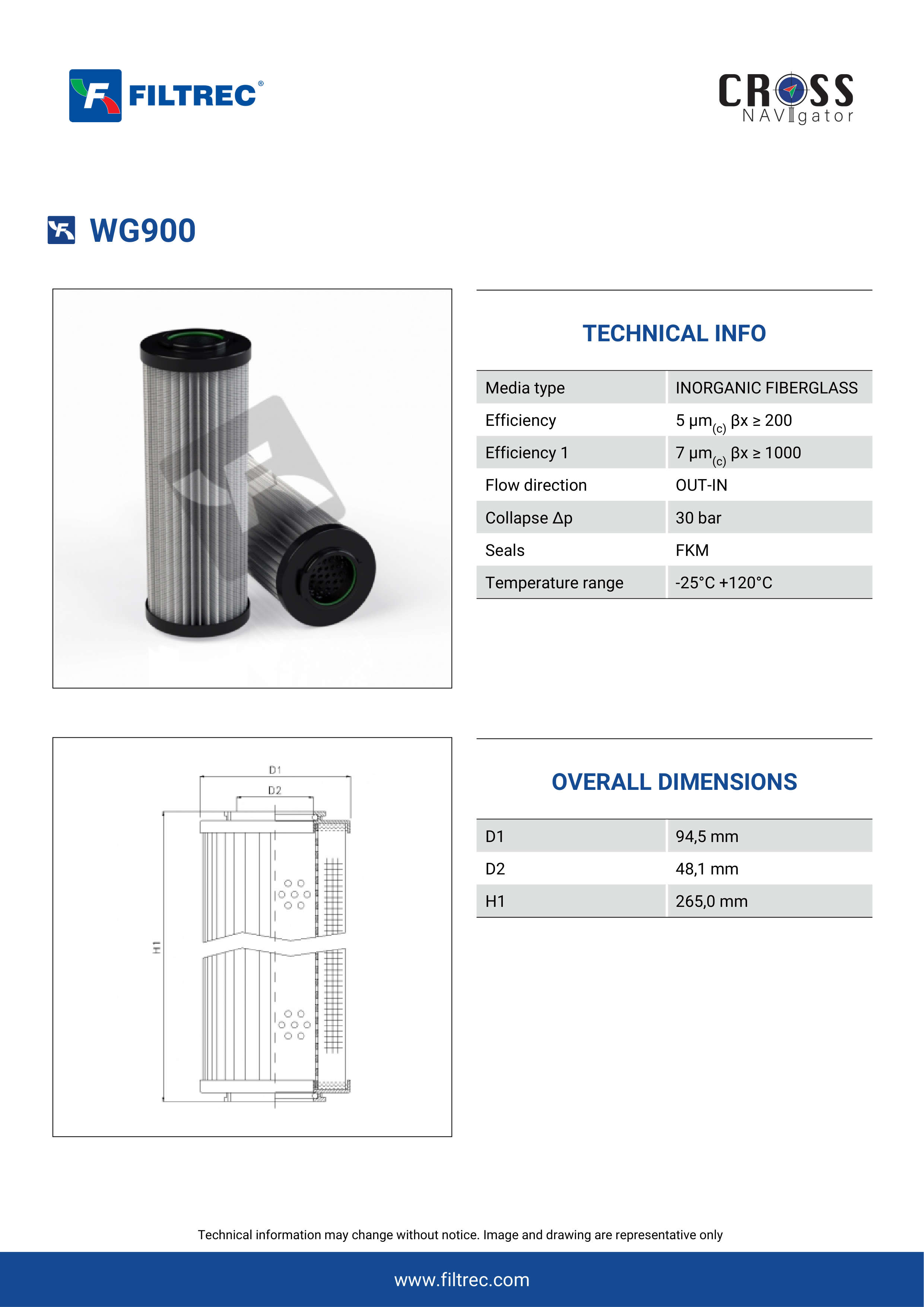 Genuine Filtrec WG900. This Filtrec element is designed to meet or exceed the quality and performance of brand OEM’s ensuring superior filtration performance and long-lasting durability.