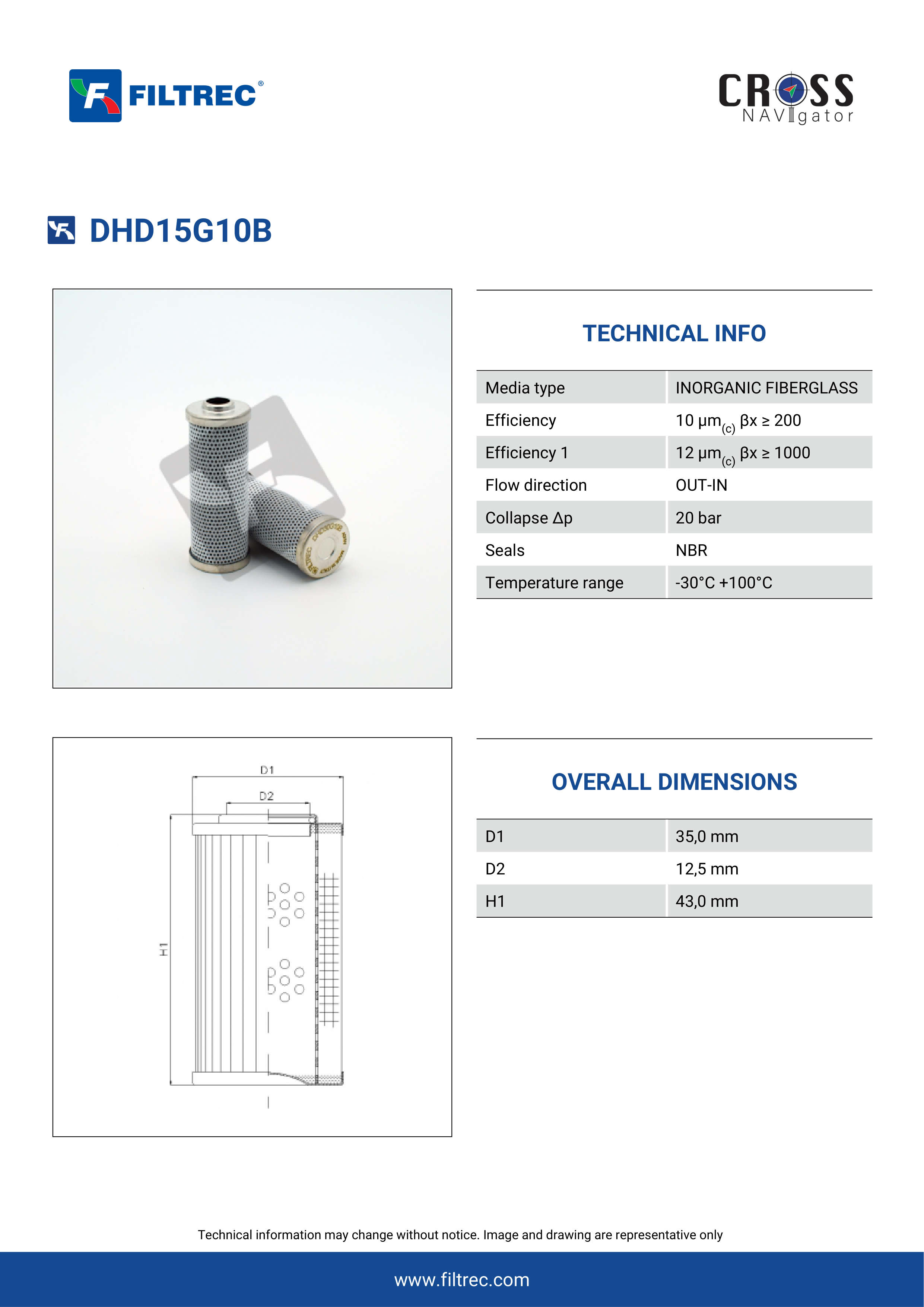 Genuine Filtrec DHD15G10B. This Filtrec element is designed to meet or exceed the quality and performance of brand OEM’s ensuring superior filtration performance and long-lasting durability.