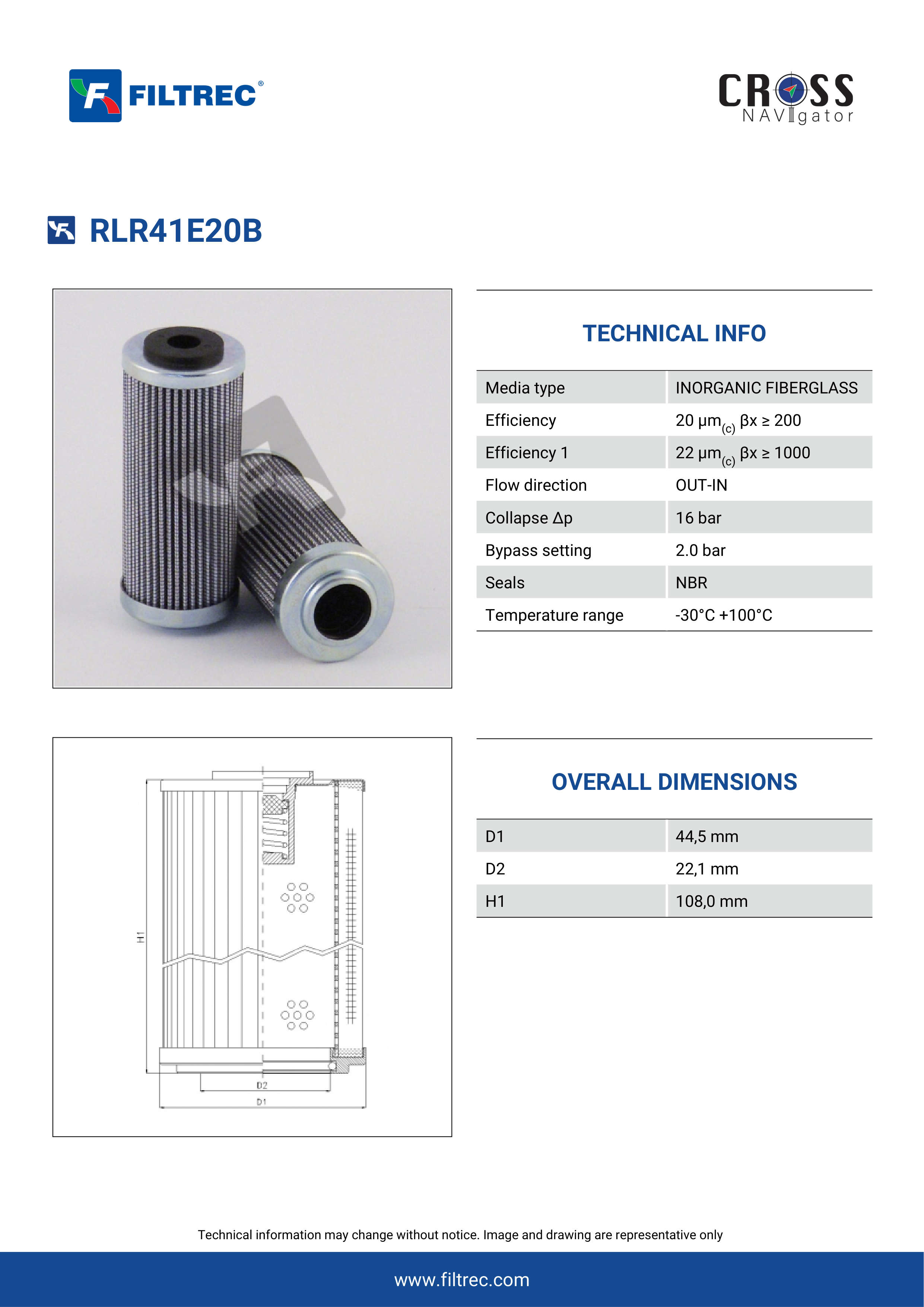 The efficiency of the element is shown using the Micron (µ) and Beta (β) ratings. The micron rating indicates the size of the particle being filtered and the beta rating the efficiency, calculated as 1/β.