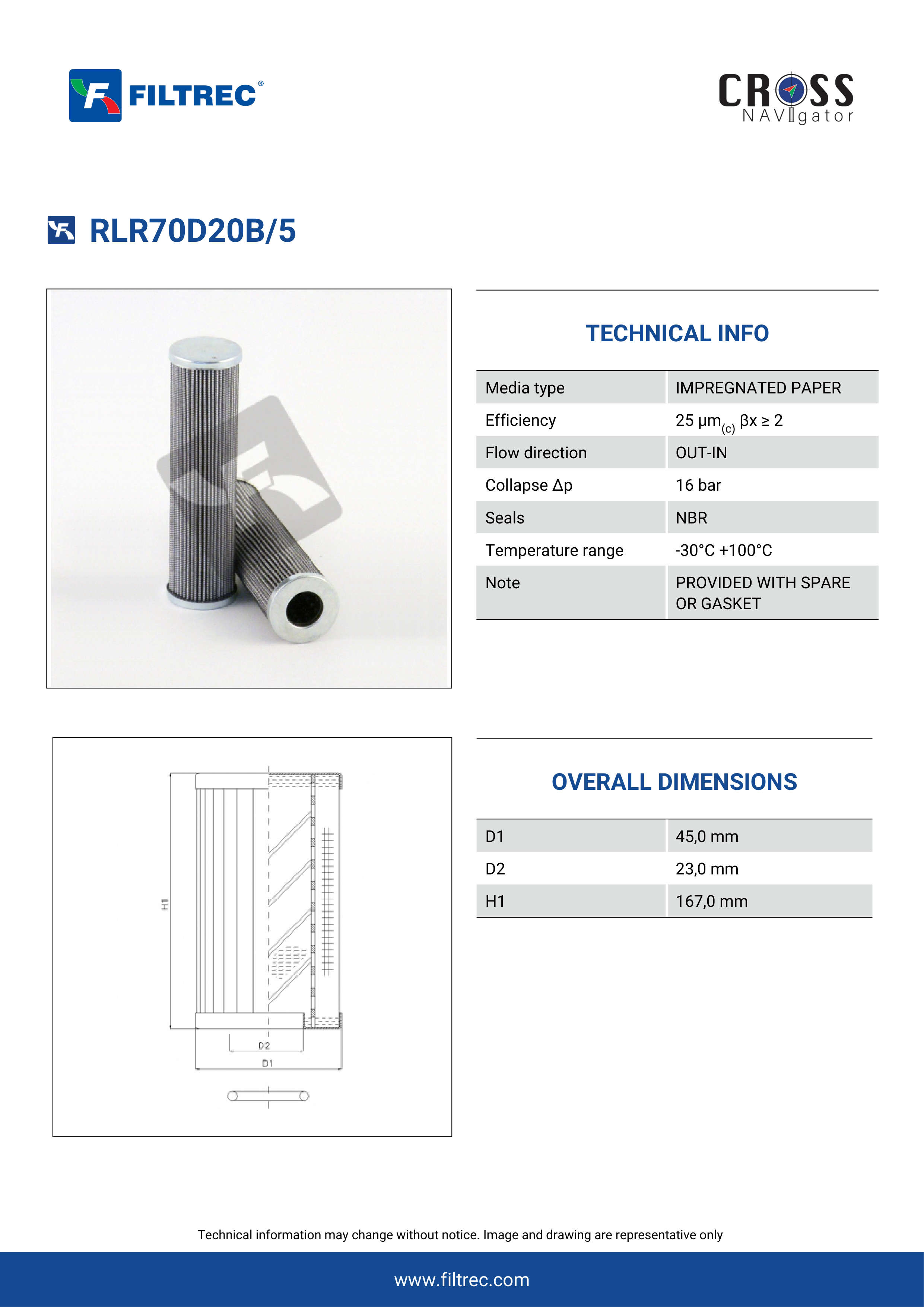 The efficiency of the element is shown using the Micron (µ) and Beta (β) ratings. The micron rating indicates the size of the particle being filtered and the beta rating the efficiency, calculated as 1/β.
