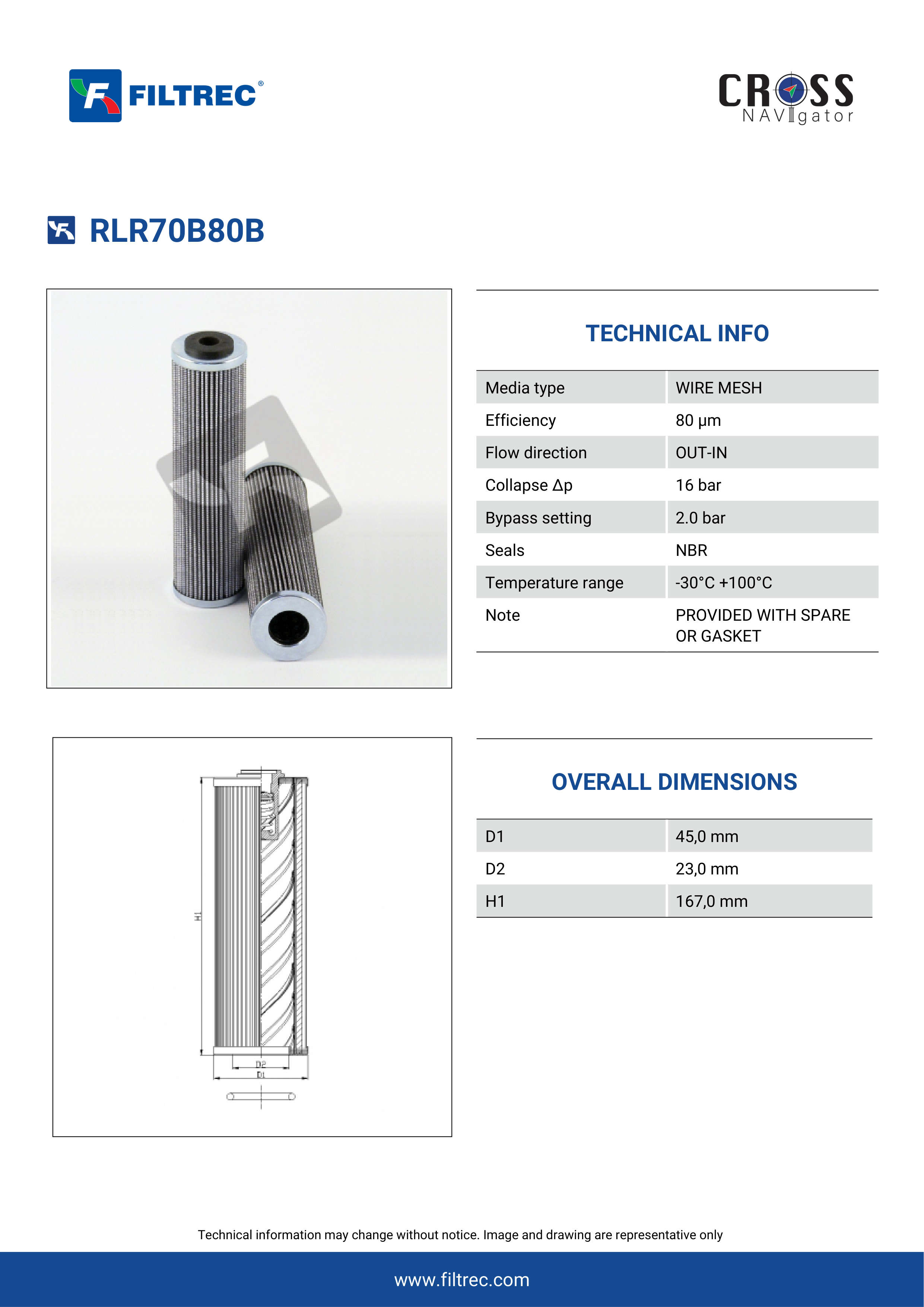 Genuine Filtrec RLR70B80B. This Filtrec element is designed to meet or exceed the quality and performance of brand OEM’s ensuring superior filtration performance and long-lasting durability.