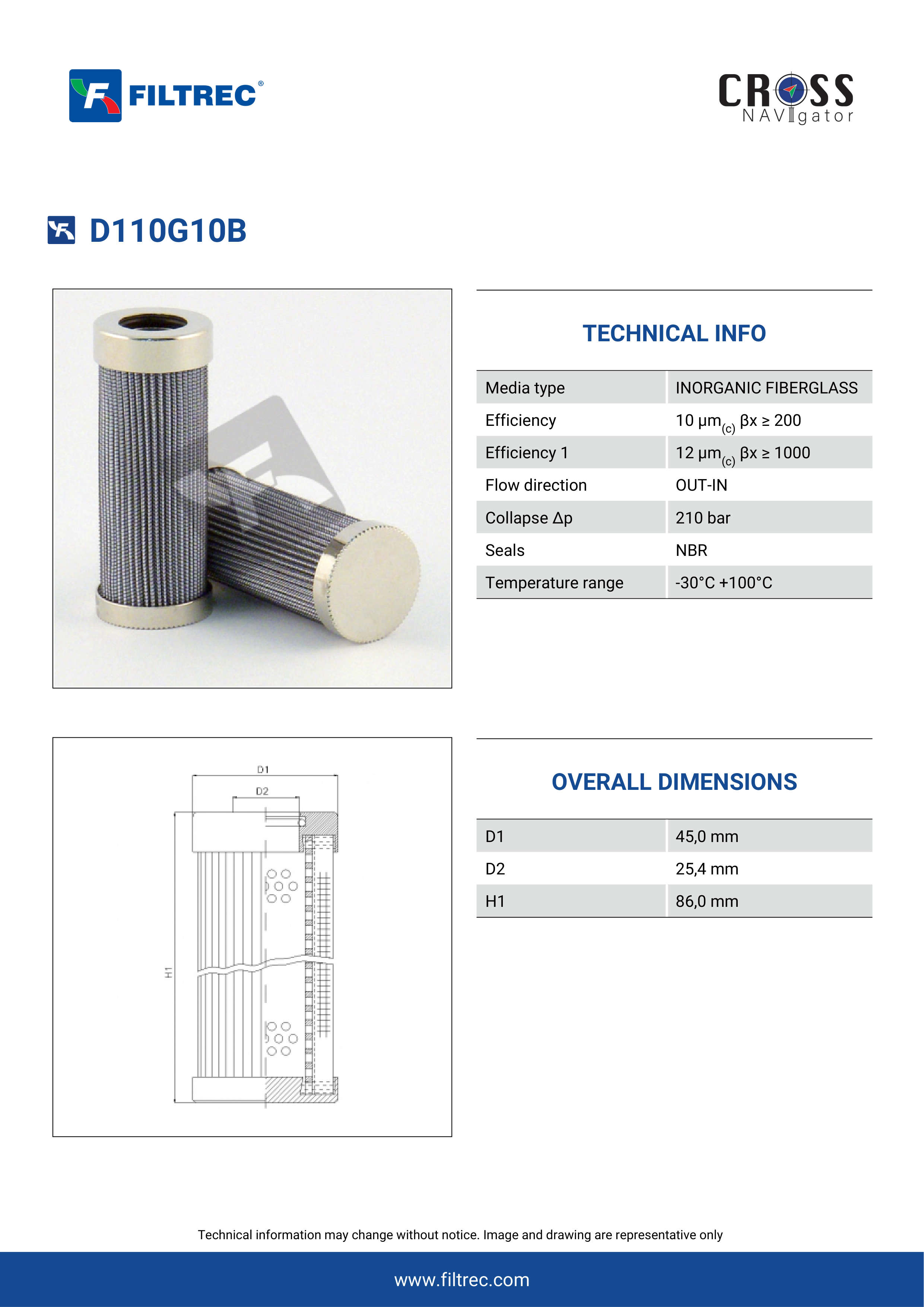 Genuine Filtrec D110G10B. This Filtrec element is designed to meet or exceed the quality and performance of brand OEM’s ensuring superior filtration performance and long-lasting durability.