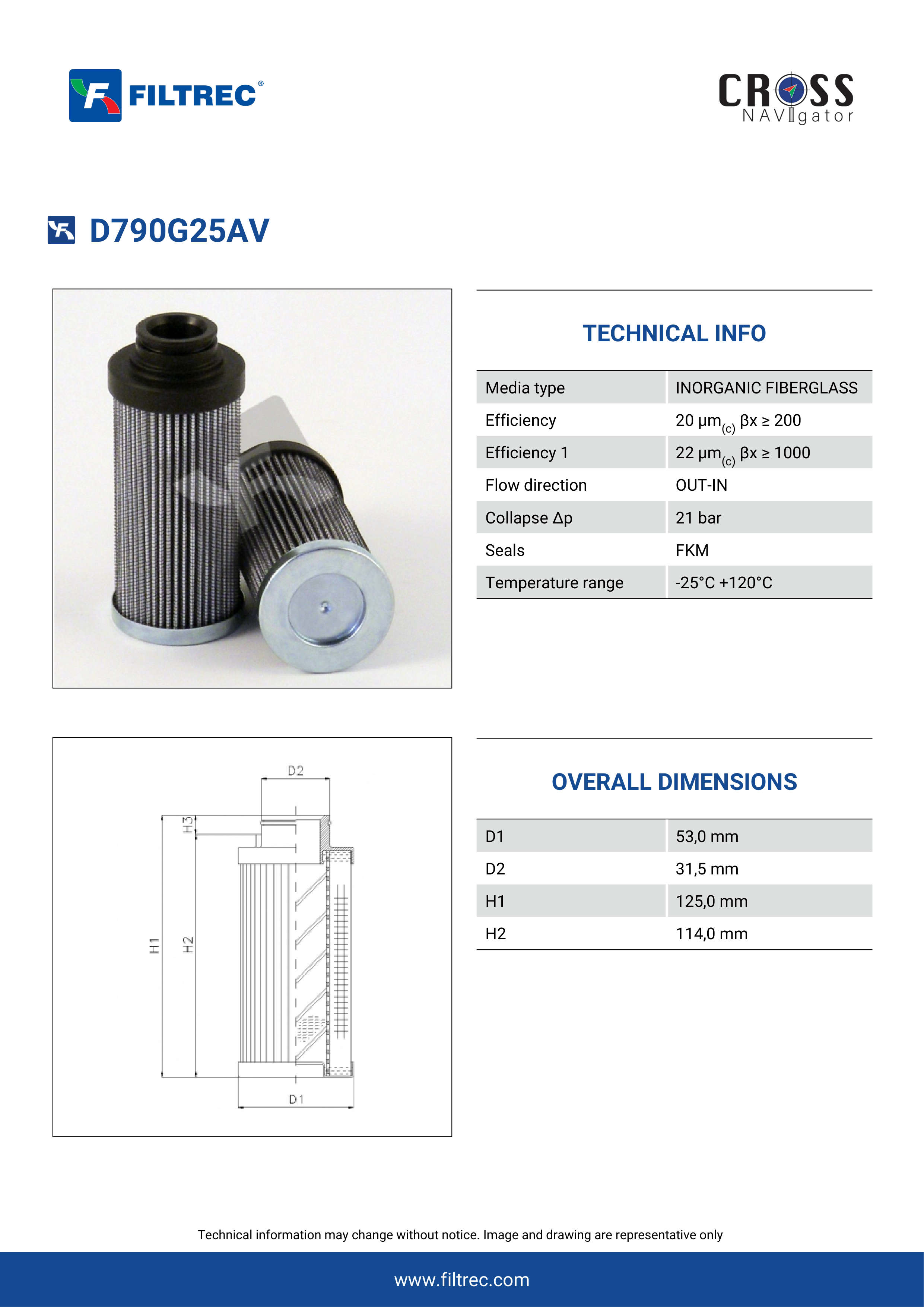 Genuine Filtrec D790G25AV. This Filtrec element is designed to meet or exceed the quality and performance of brand OEM’s ensuring superior filtration performance and long-lasting durability.