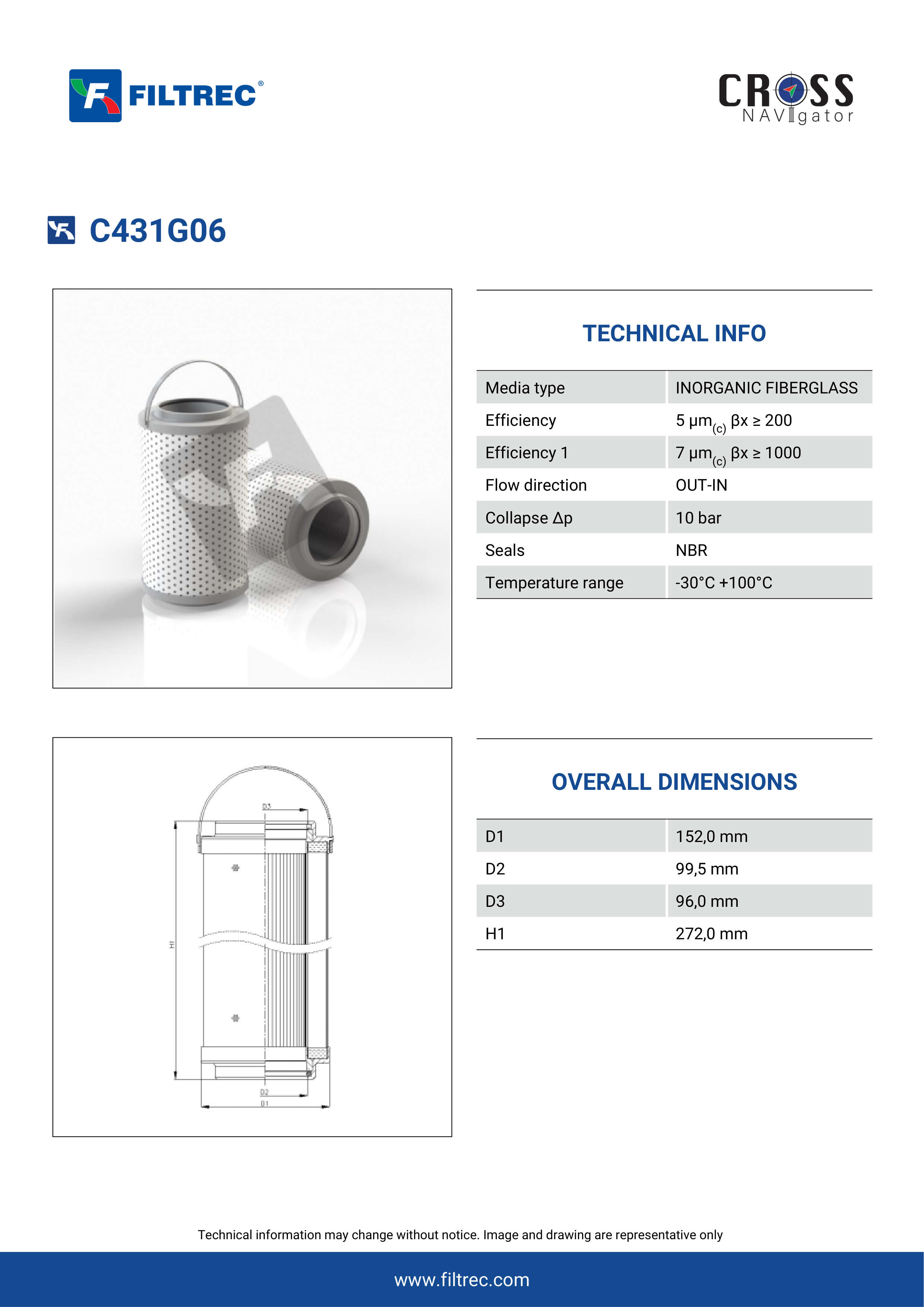 The efficiency of the element is shown using the Micron (µ) and Beta (β) ratings. The micron rating indicates the size of the particle being filtered and the beta rating the efficiency, calculated as 1/β.