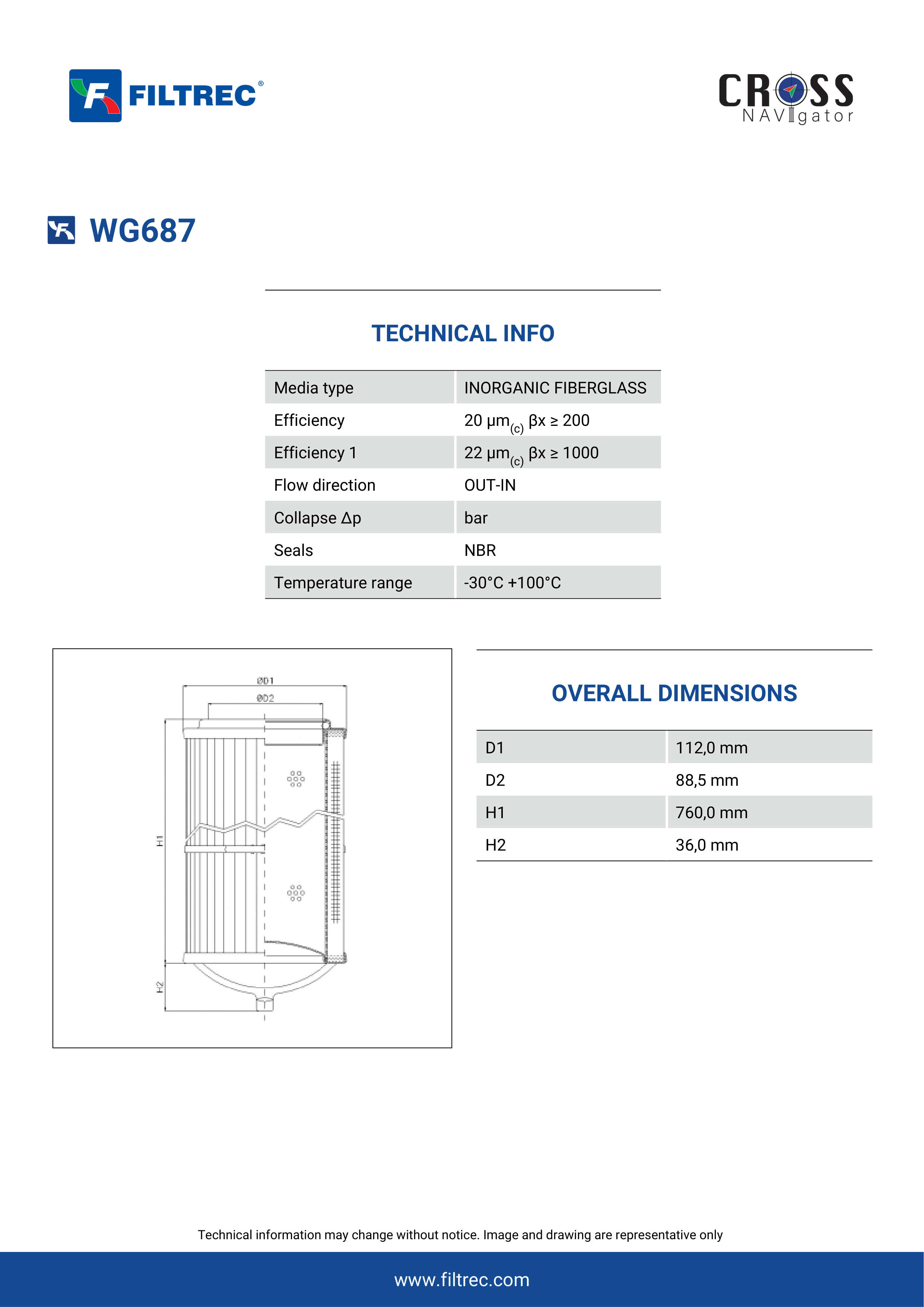 Genuine Filtrec WG687. This Filtrec element is designed to meet or exceed the quality and performance of brand OEM’s ensuring superior filtration performance and long-lasting durability.