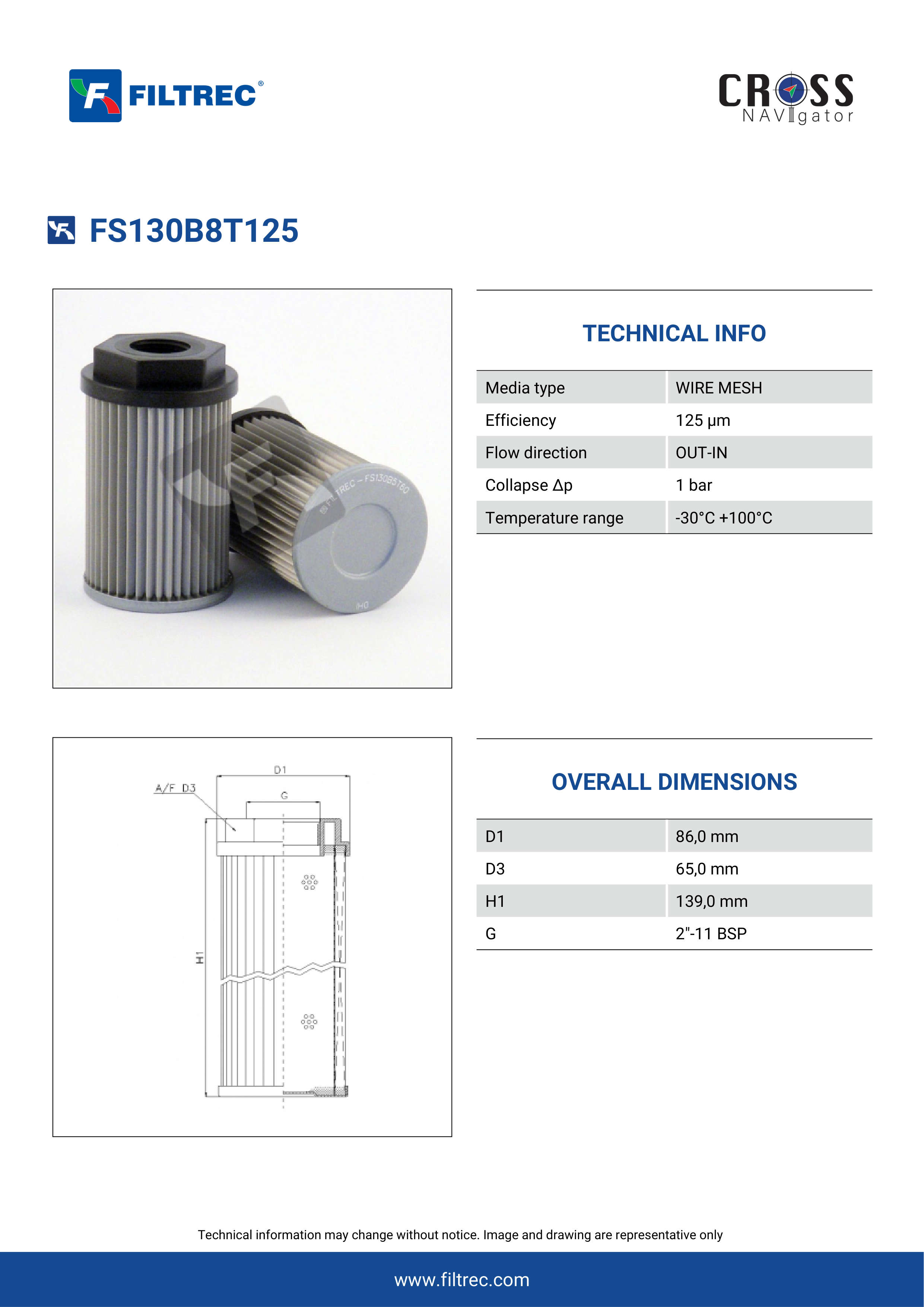 The efficiency of the element is shown using the Micron (µ) and Beta (β) ratings. The micron rating indicates the size of the particle being filtered and the beta rating the efficiency, calculated as 1/β.