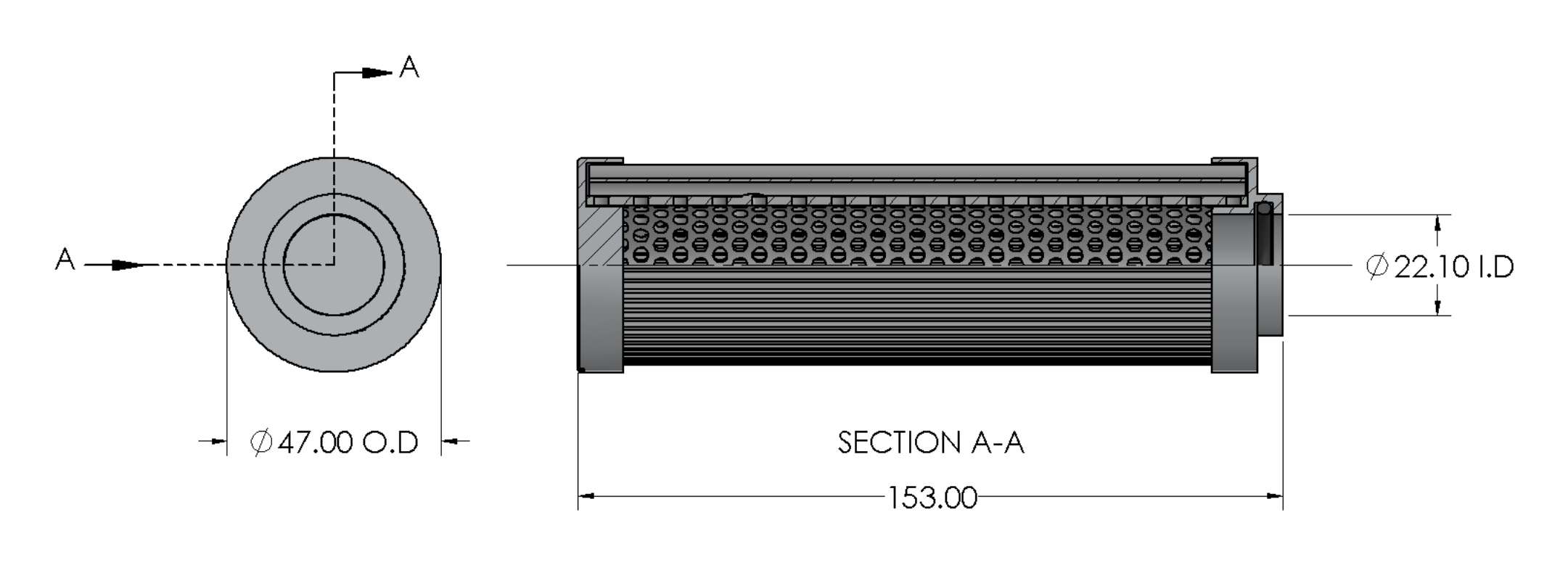 The efficiency of the element is shown using the Micron (µ) and Beta (β) ratings. The micron rating indicates the size of the particle being filtered and the beta rating the efficiency, calculated as 1/β.