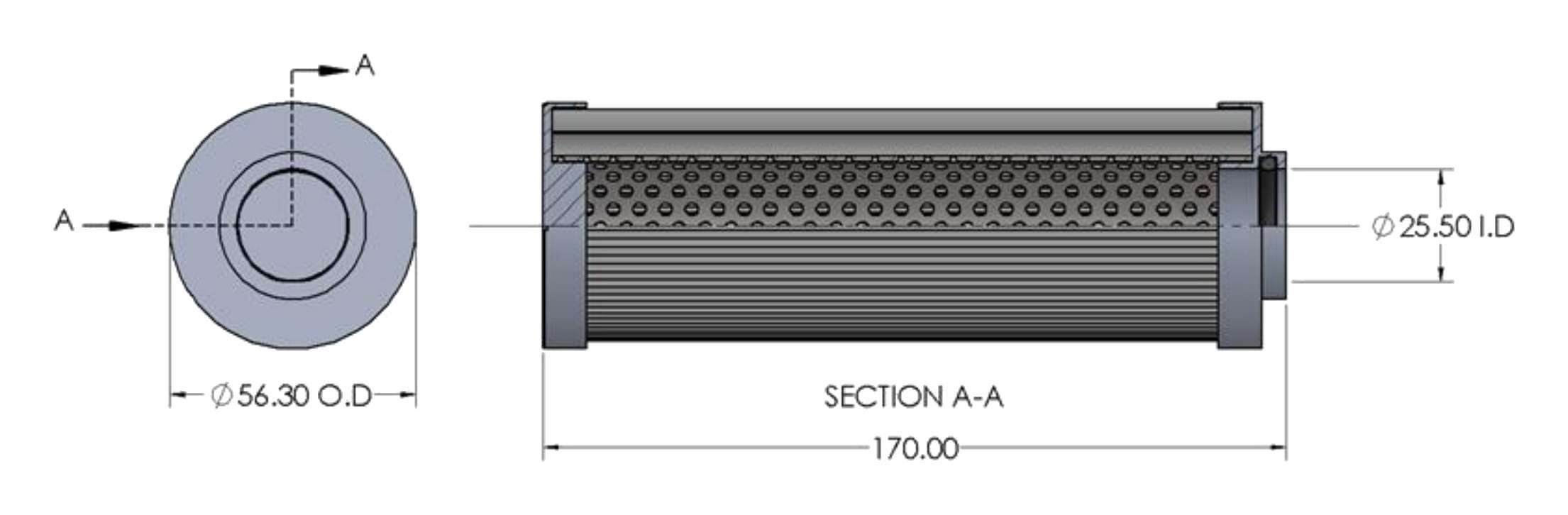 The efficiency of the element is shown using the Micron (µ) and Beta (β) ratings. The micron rating indicates the size of the particle being filtered and the beta rating the efficiency, calculated as 1/β.