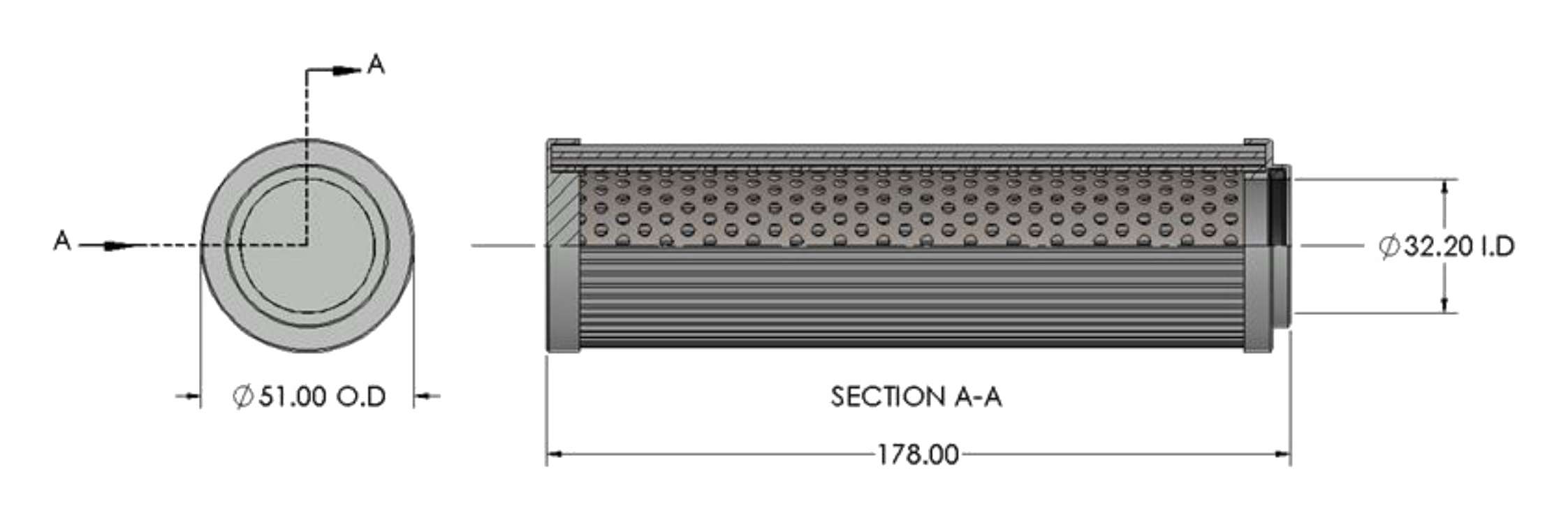 The efficiency of the element is shown using the Micron (µ) and Beta (β) ratings. The micron rating indicates the size of the particle being filtered and the beta rating the efficiency, calculated as 1/β.