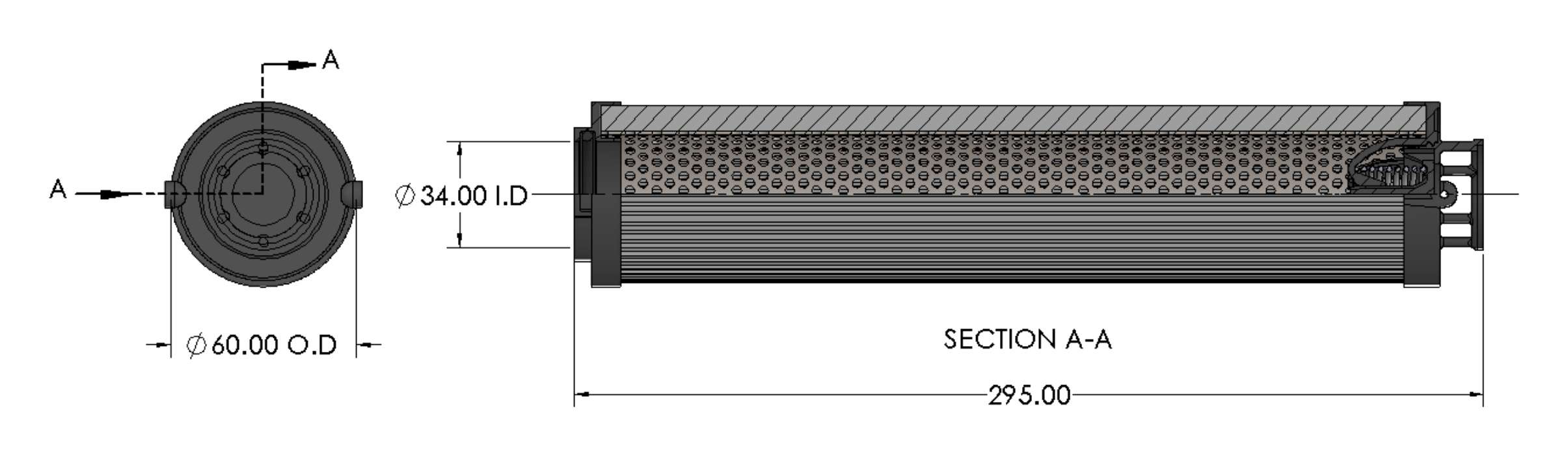 The efficiency of the element is shown using the Micron (µ) and Beta (β) ratings. The micron rating indicates the size of the particle being filtered and the beta rating the efficiency, calculated as 1/β.