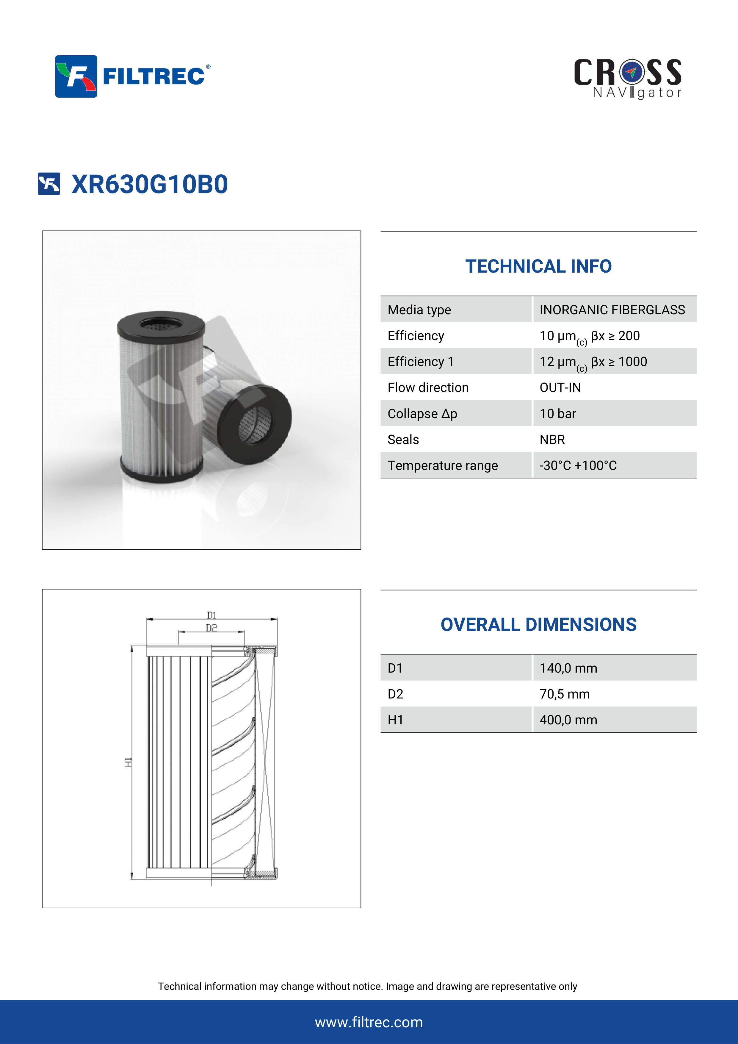 The efficiency of the element is shown using the Micron (µ) and Beta (β) ratings. The micron rating indicates the size of the particle being filtered and the beta rating the efficiency, calculated as 1/β.