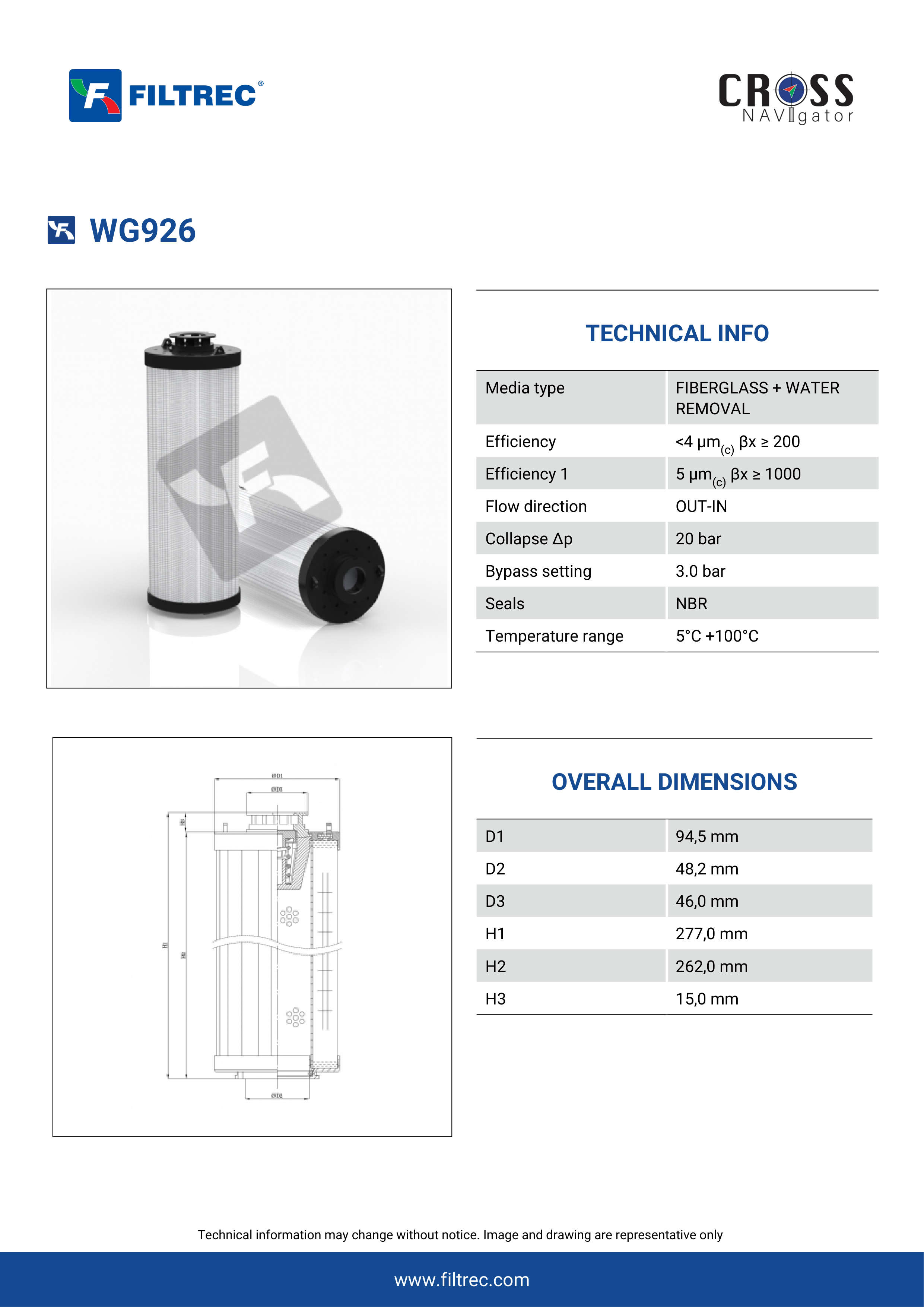 Engineered with their high performance media and a durable design, the WG926 provides reliable and consistent performance over its lifespan, even in harsh operating environments. When you order from FilterFinder, you can trust that you are getting a reliable and high-quality replacement filter that will keep your system running smoothly.