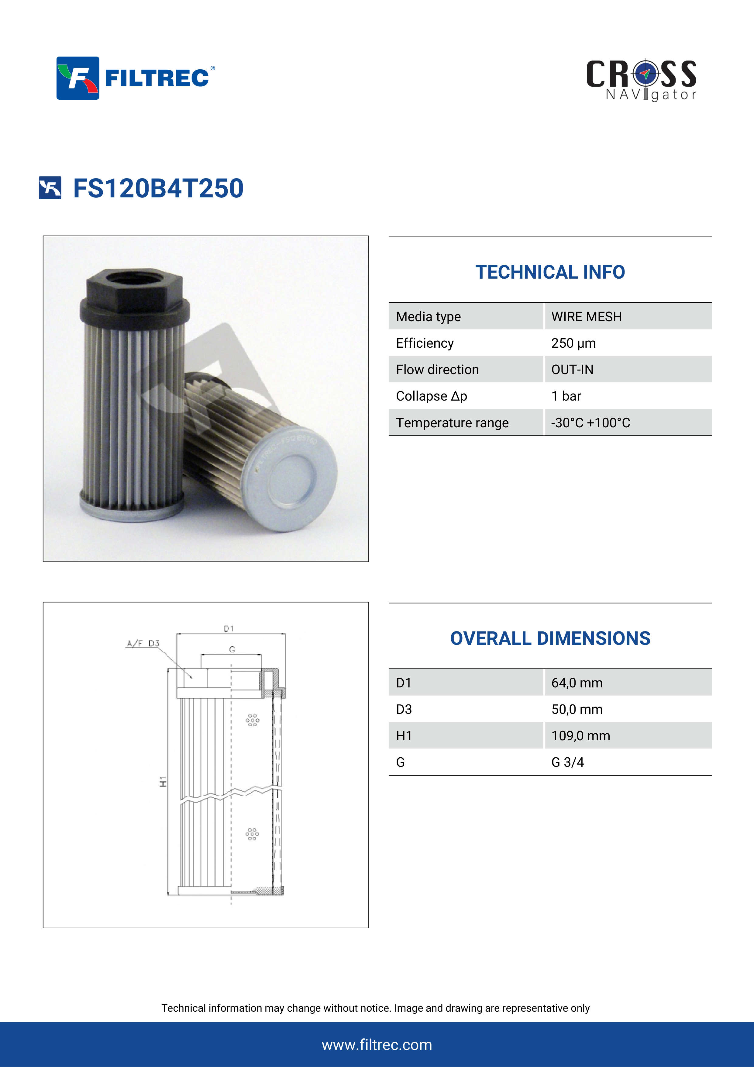 Genuine Filtrec FS120B4T250. This Filtrec element is designed to meet or exceed the quality and performance of brand OEM’s ensuring superior filtration performance and long-lasting durability.