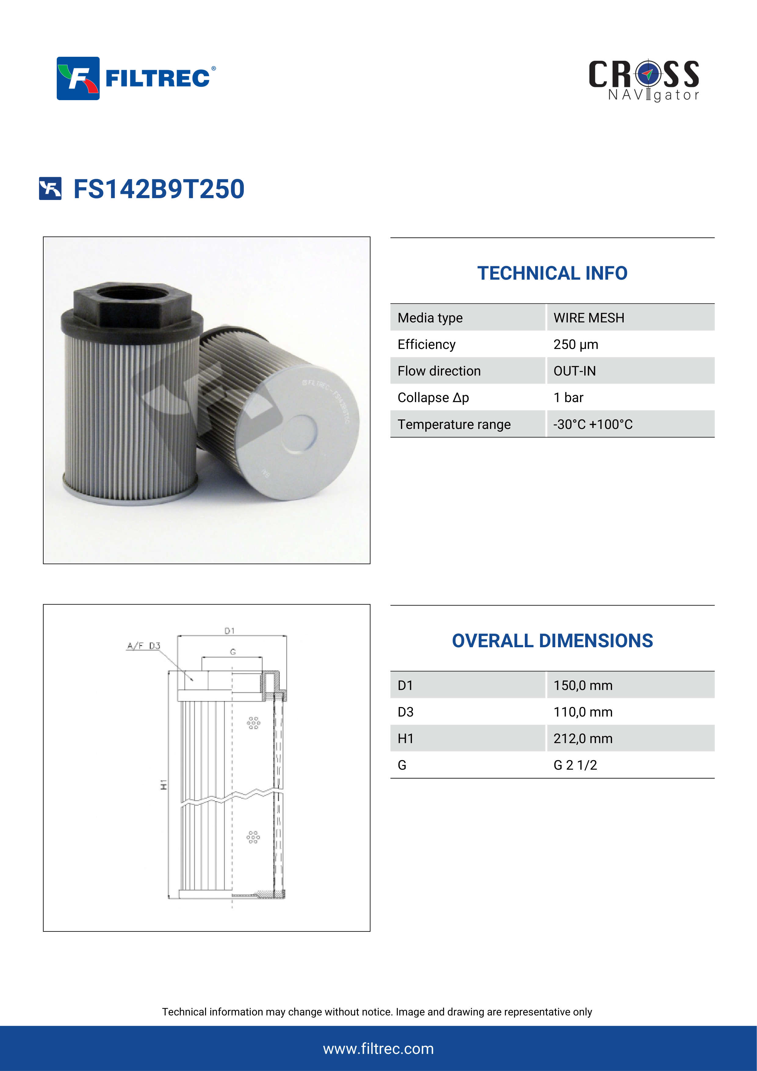 Genuine Filtrec FS142B9T250. This Filtrec element is designed to meet or exceed the quality and performance of brand OEM’s ensuring superior filtration performance and long-lasting durability.