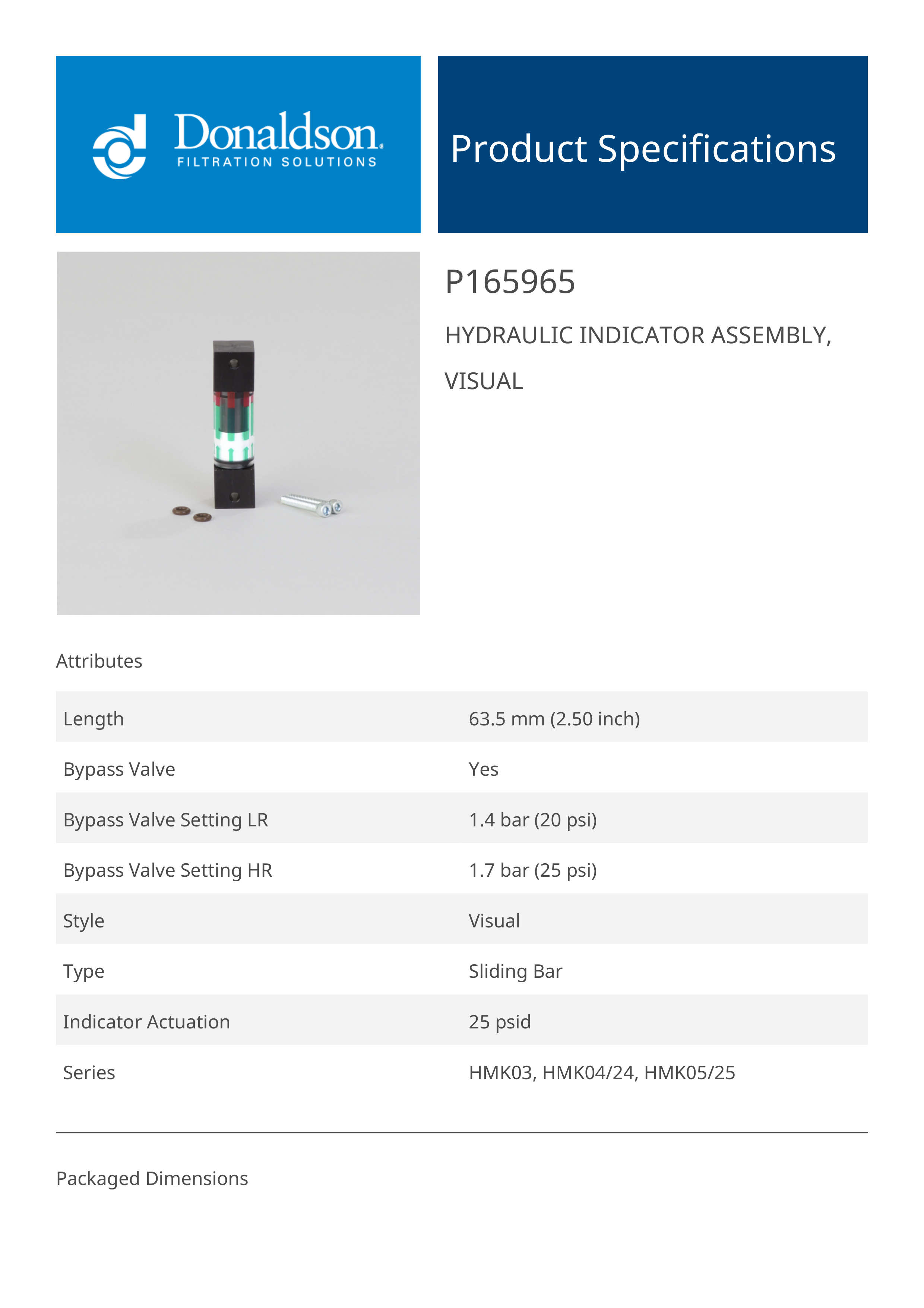 Donaldson P165965 Hydraulic Indicator Assembly Visual