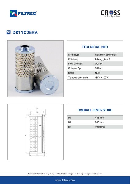 Engineered with their high performance media and a durable design, the D811C25RA provides reliable and consistent performance over its lifespan, even in harsh operating environments. When you order from FilterFinder, you can trust that you are getting a reliable and high-quality replacement filter that will keep your system running smoothly.