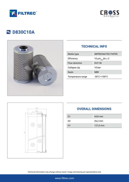Engineered with their high performance media and a durable design, the D830C10A provides reliable and consistent performance over its lifespan, even in harsh operating environments. When you order from FilterFinder, you can trust that you are getting a reliable and high-quality replacement filter that will keep your system running smoothly.