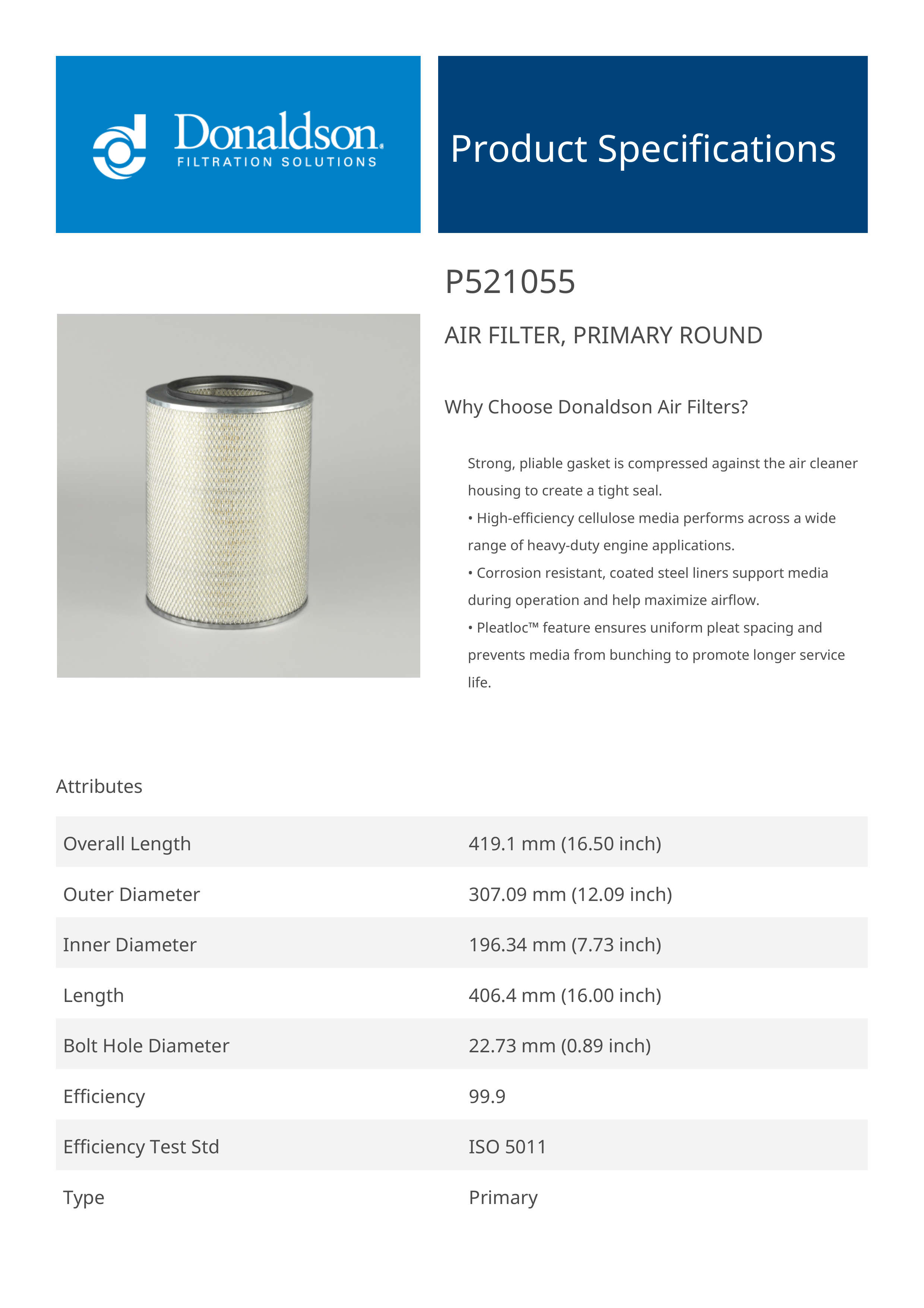 Genuine Donaldson P521055 Air Primary Round is engineered to deliver reliable performance and durability across a wide range of applications. Designed with high-quality materials, it ensures consistent functionality while meeting demanding operational requirements.