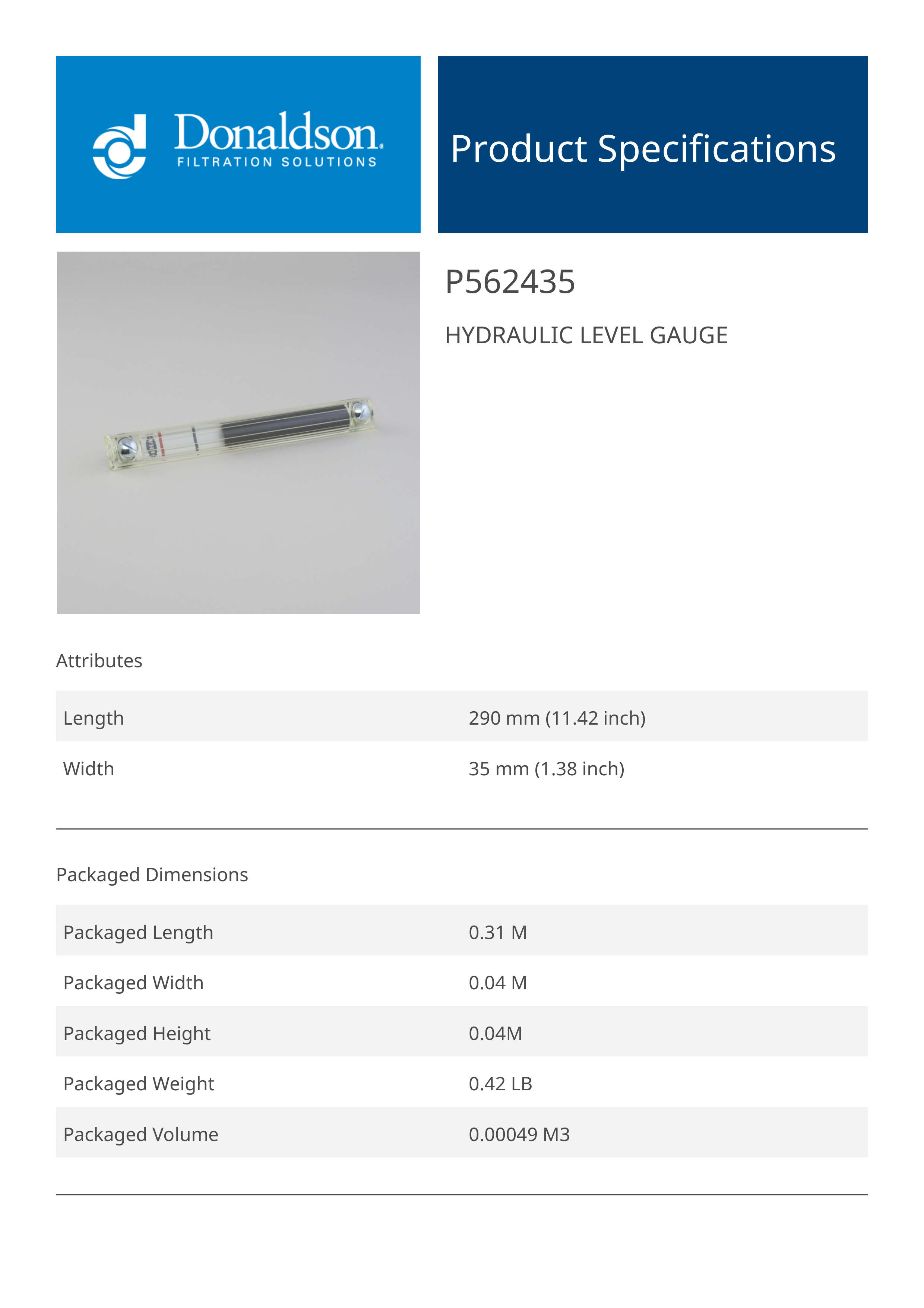 Genuine Donaldson P562435 Hydraulic Level Gauge is engineered to deliver reliable performance and durability across a wide range of applications. Designed with high-quality materials, it ensures consistent functionality while meeting demanding operational requirements.Whether used in industrial, automotive, or heavy-duty settings, this component offers dependable operation and longevity. Its versatile design makes it suitable for various uses, supporting system efficiency and overall performance.