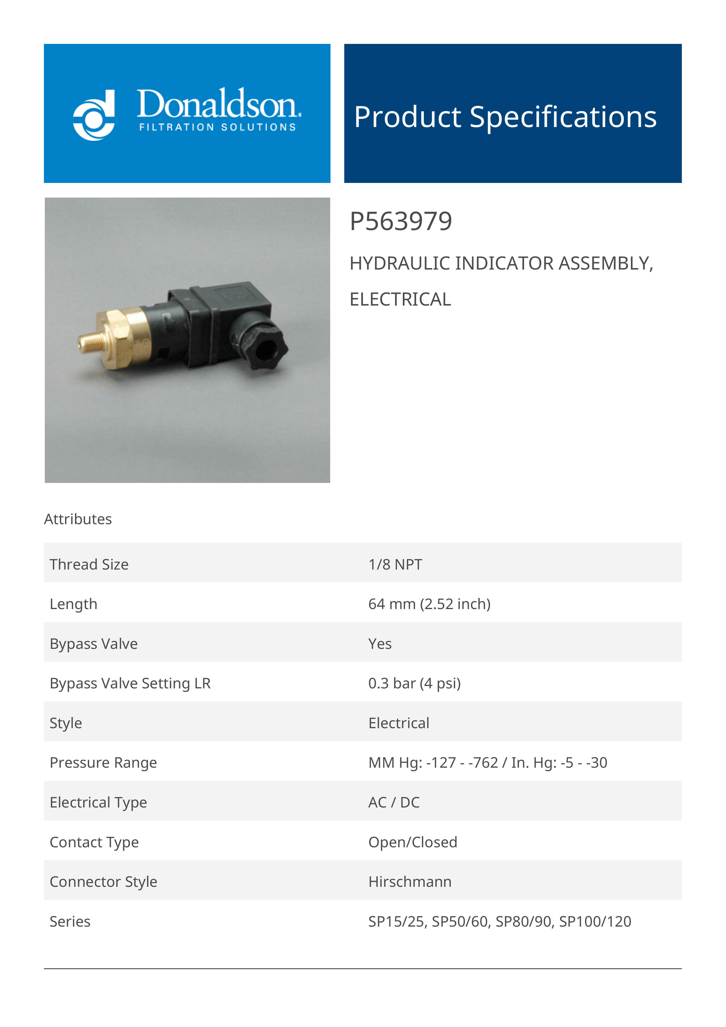Donaldson P563979 Replacement Hydraulic Indicator Electrical