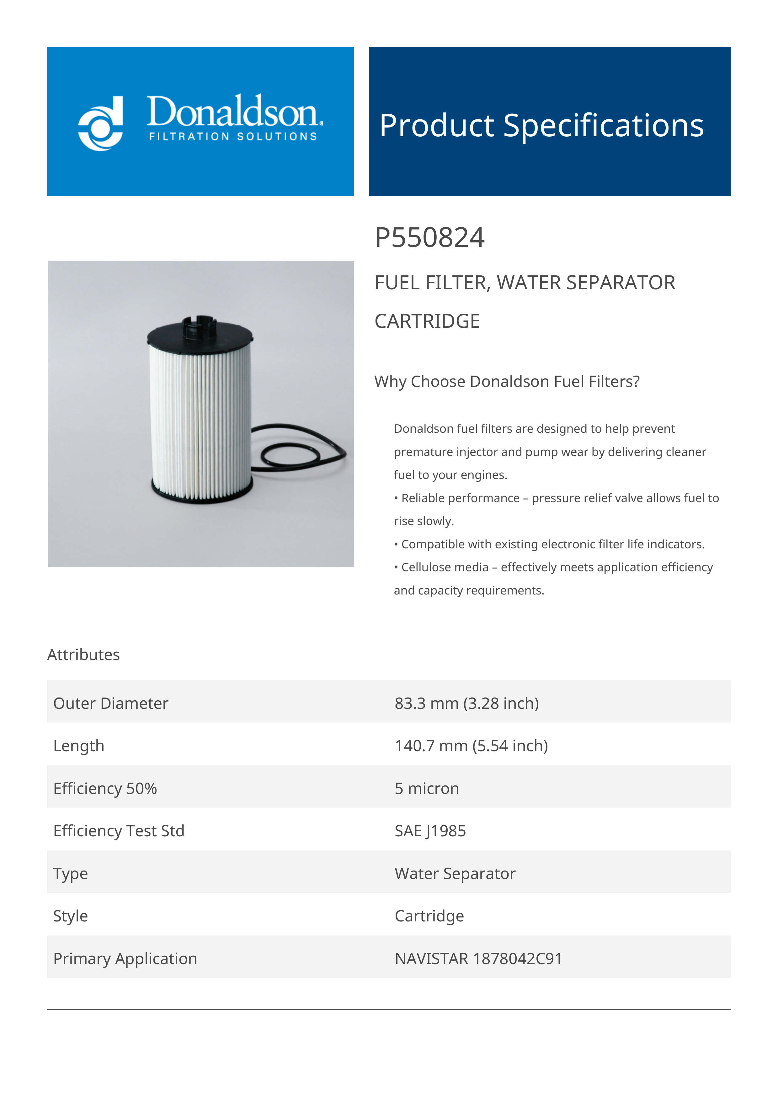 Donaldson P550824 Fuel Filter, Water Separator Cartridge | Replaces the Baldwin PF7978