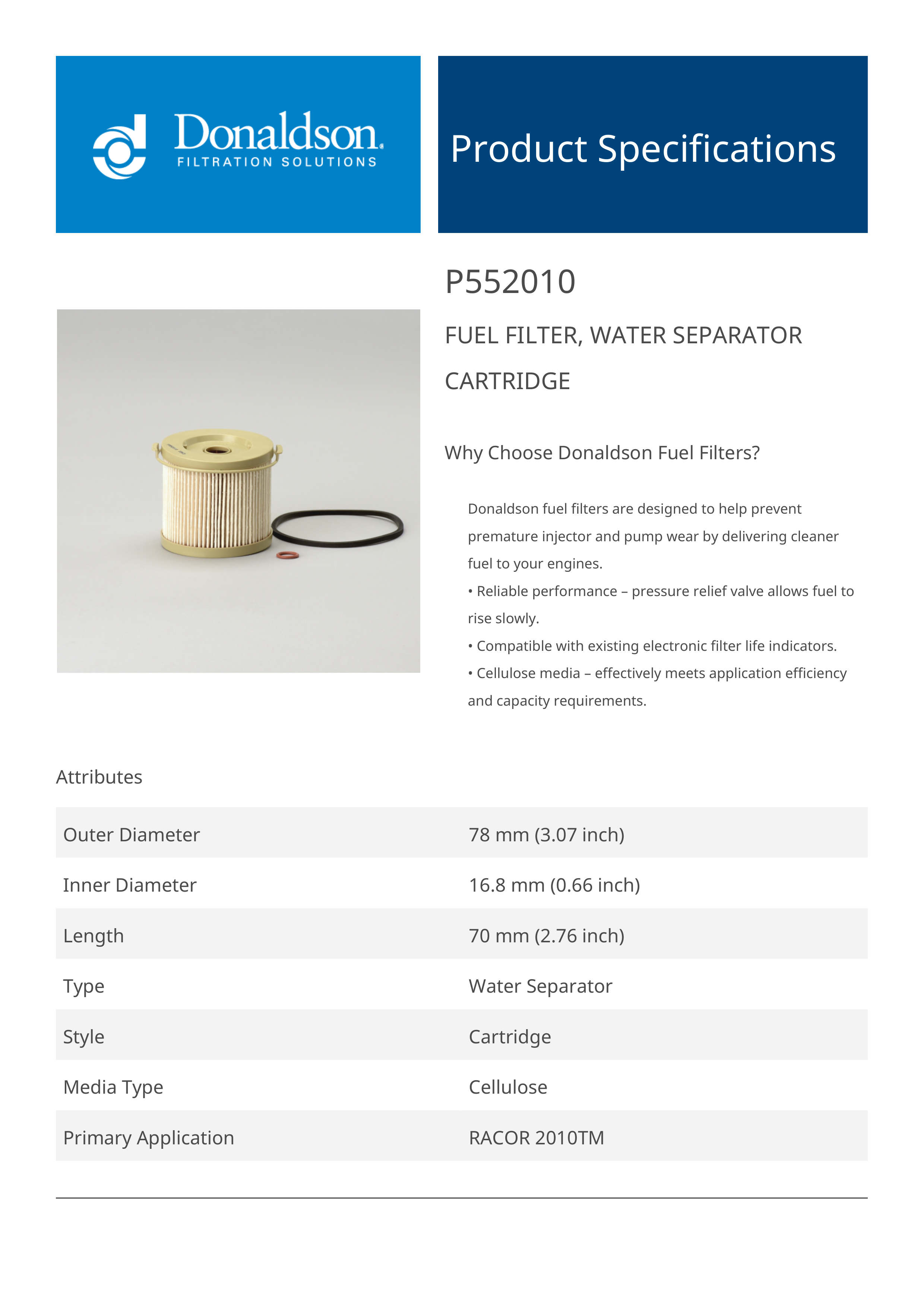 Donaldson P552010 Fuel Filter, Water Separator Cartridge | Replaces the Baldwin PF9838