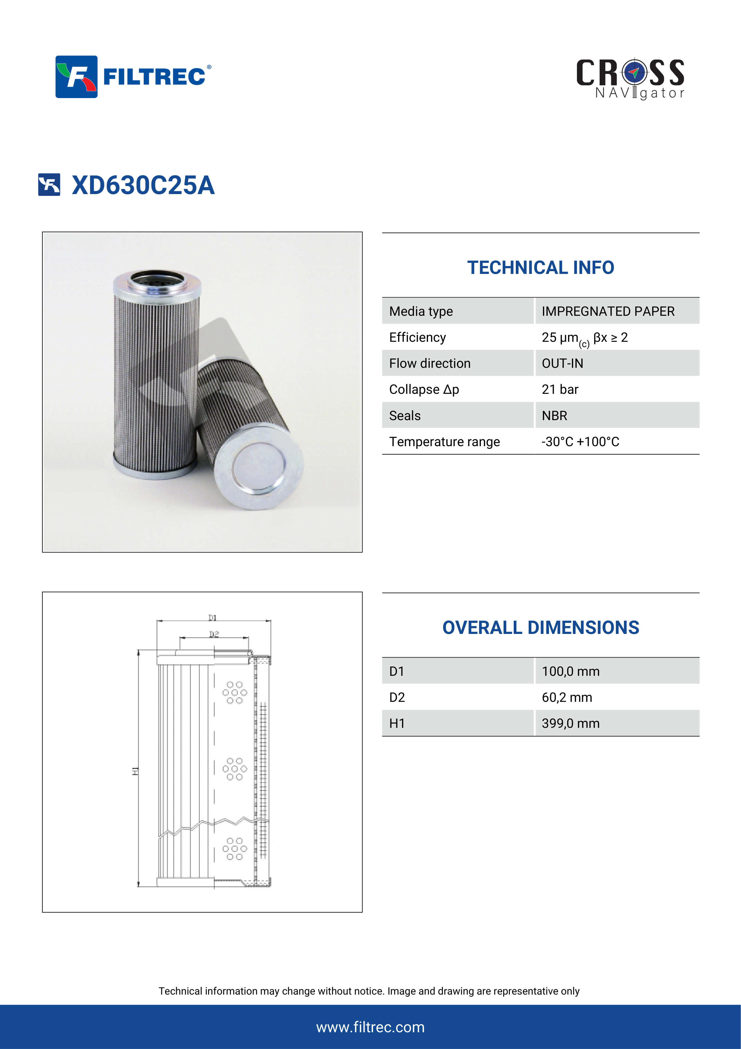 Genuine Filtrec XD630C25A. This Filtrec element is designed to meet or exceed the quality and performance of brand OEM’s ensuring superior filtration performance and long-lasting durability.