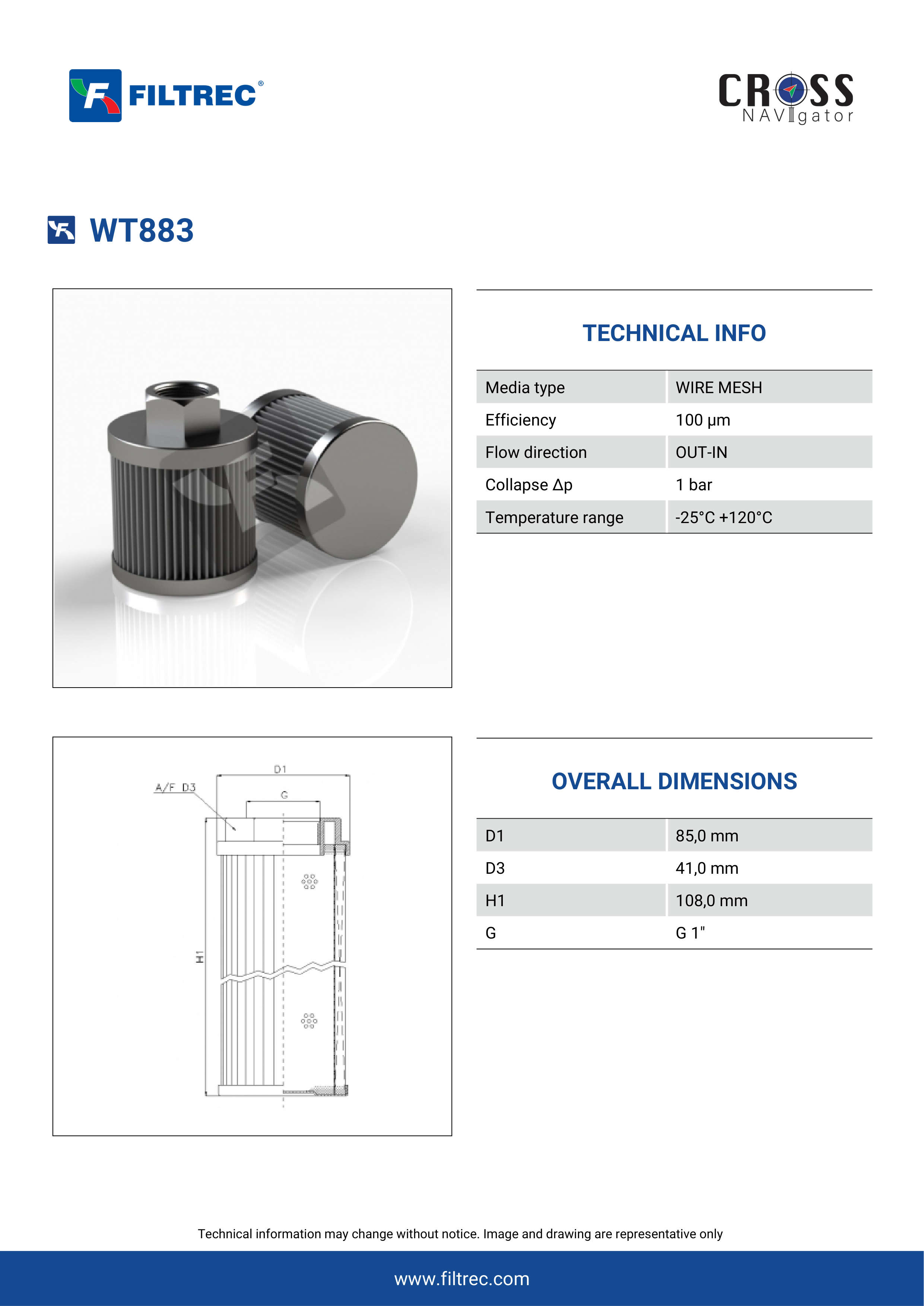 Genuine Filtrec WT883. This Filtrec element is designed to meet or exceed the quality and performance of brand OEM’s ensuring superior filtration performance and long-lasting durability.