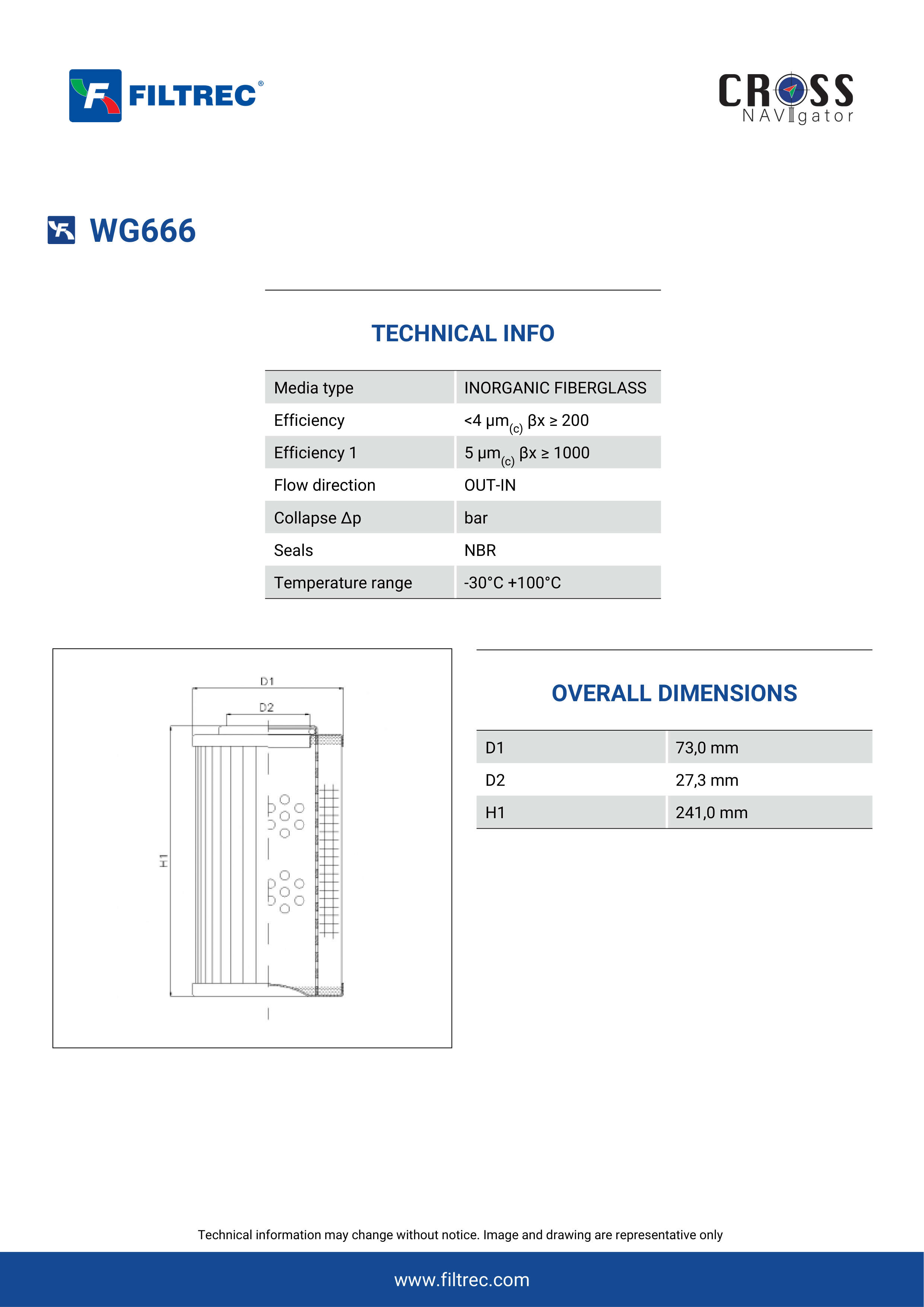The efficiency of the element is shown using the Micron (µ) and Beta (β) ratings. The micron rating indicates the size of the particle being filtered and the beta rating the efficiency, calculated as 1/β.