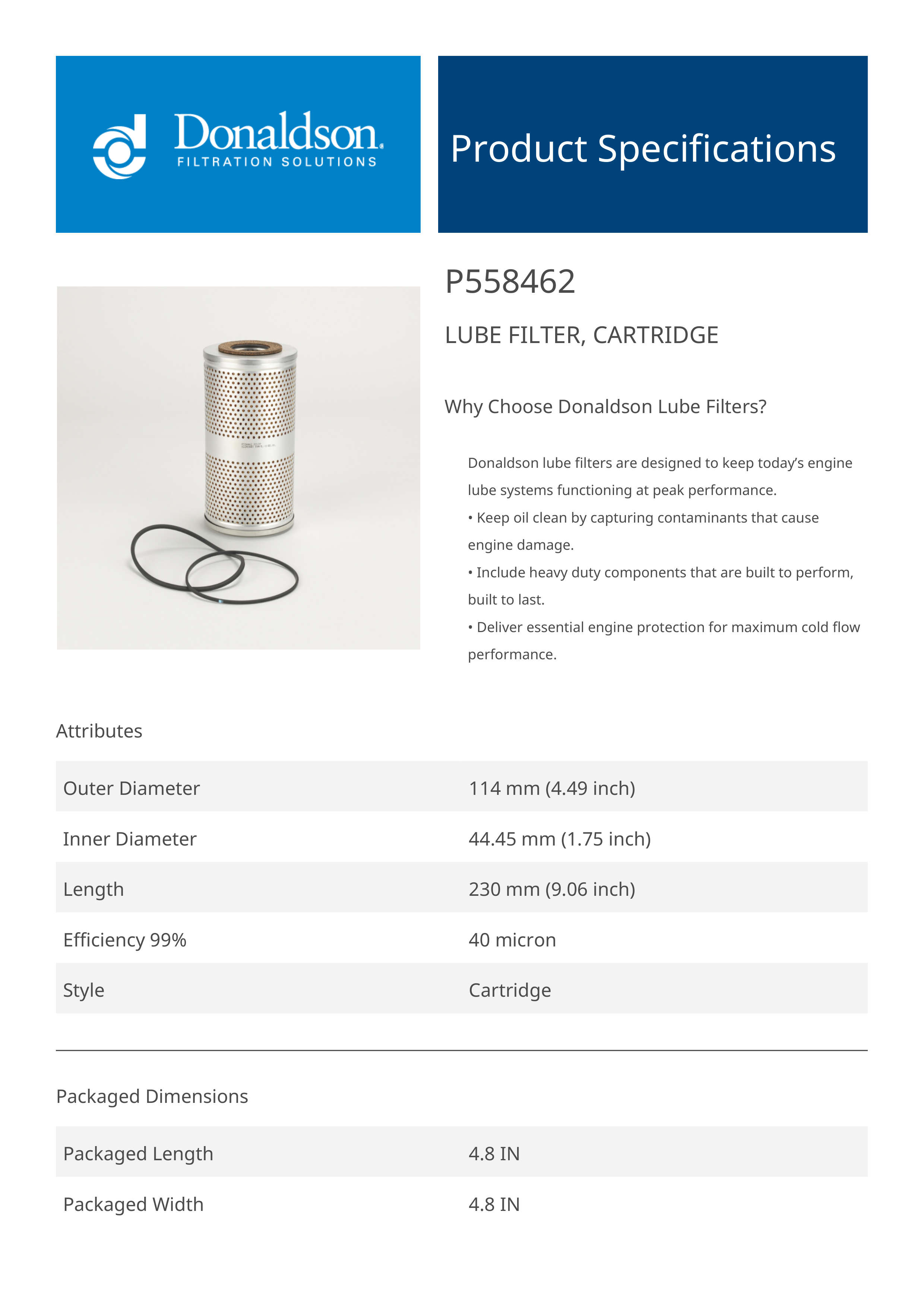 Why Choose Donaldson Lube Filters?Donaldson lube filters are designed to keep today’s engine lube systems functioning at peak performance.