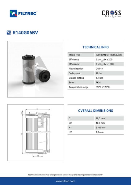 Engineered with their high performance media and a durable design, the R140G06BV provides reliable and consistent performance over its lifespan, even in harsh operating environments. When you order from FilterFinder, you can trust that you are getting a reliable and high-quality replacement filter that will keep your system running smoothly.