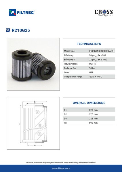 Engineered with their high performance media and a durable design, the R210G25 provides reliable and consistent performance over its lifespan, even in harsh operating environments. When you order from FilterFinder, you can trust that you are getting a reliable and high-quality replacement filter that will keep your system running smoothly.