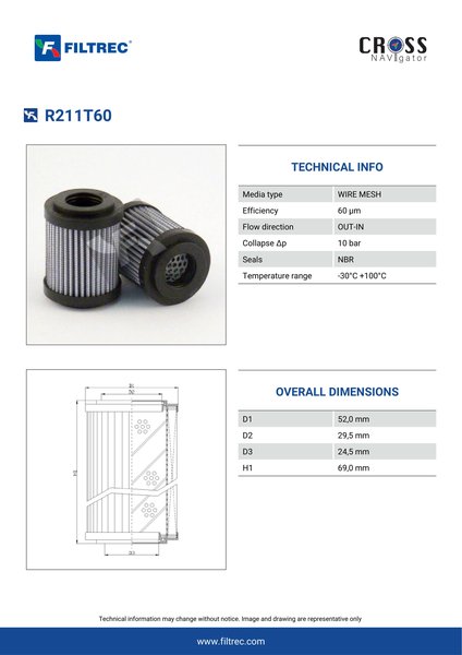The efficiency of the element is shown using the Micron (µ) and Beta (β) ratings. The micron rating indicates the size of the particle being filtered and the beta rating the efficiency, calculated as 1/β.