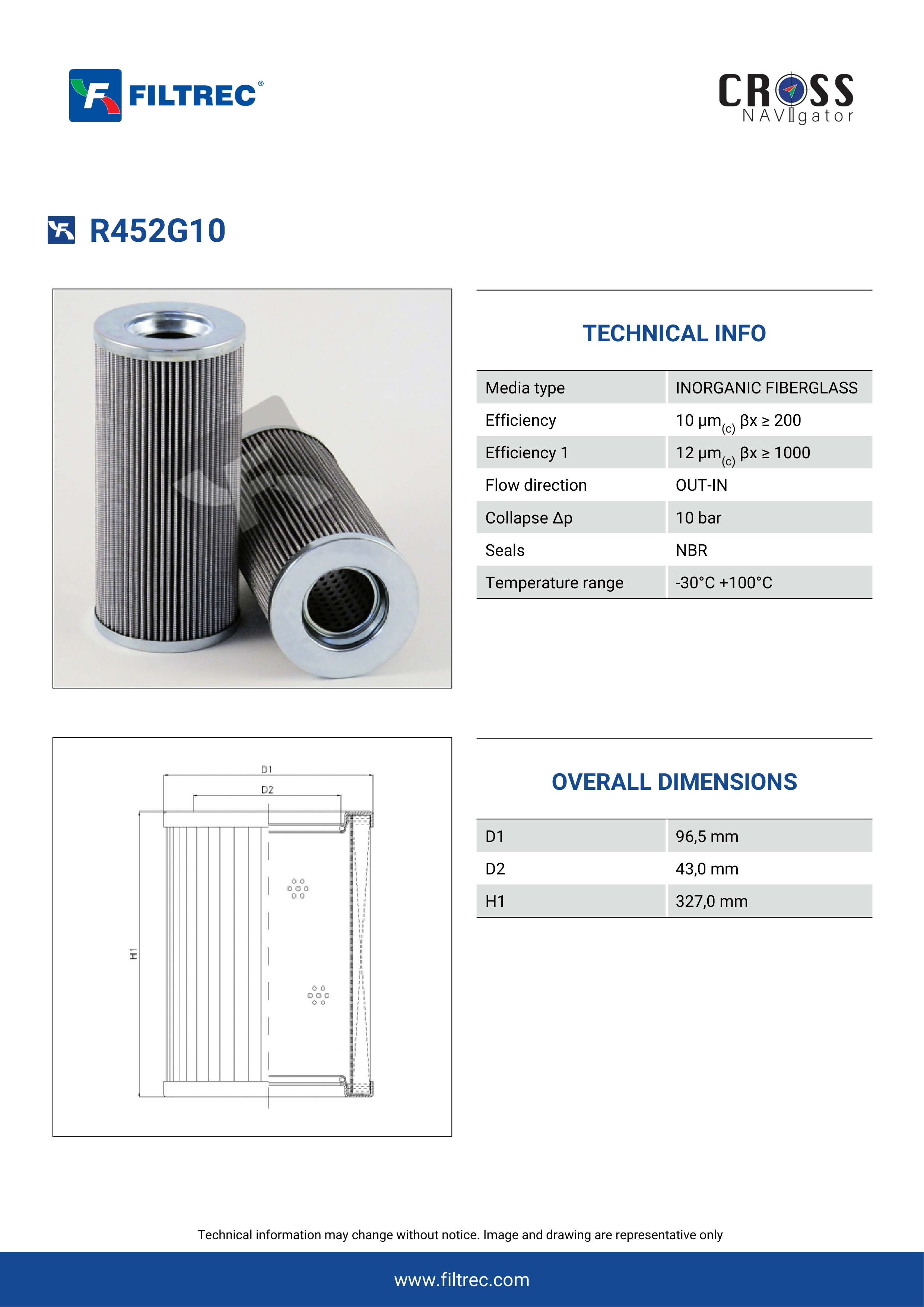 Genuine Filtrec R452G10. This Filtrec element is designed to meet or exceed the quality and performance of brand OEM’s ensuring superior filtration performance and long-lasting durability.