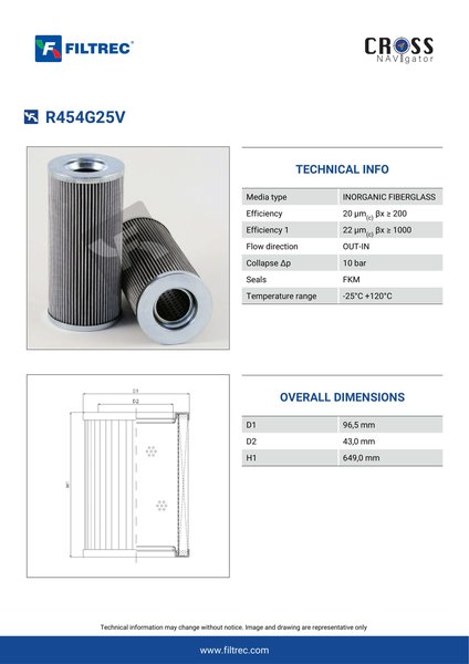 Genuine Filtrec R454G25V. This Filtrec element is designed to meet or exceed the quality and performance of brand OEM’s ensuring superior filtration performance and long-lasting durability.