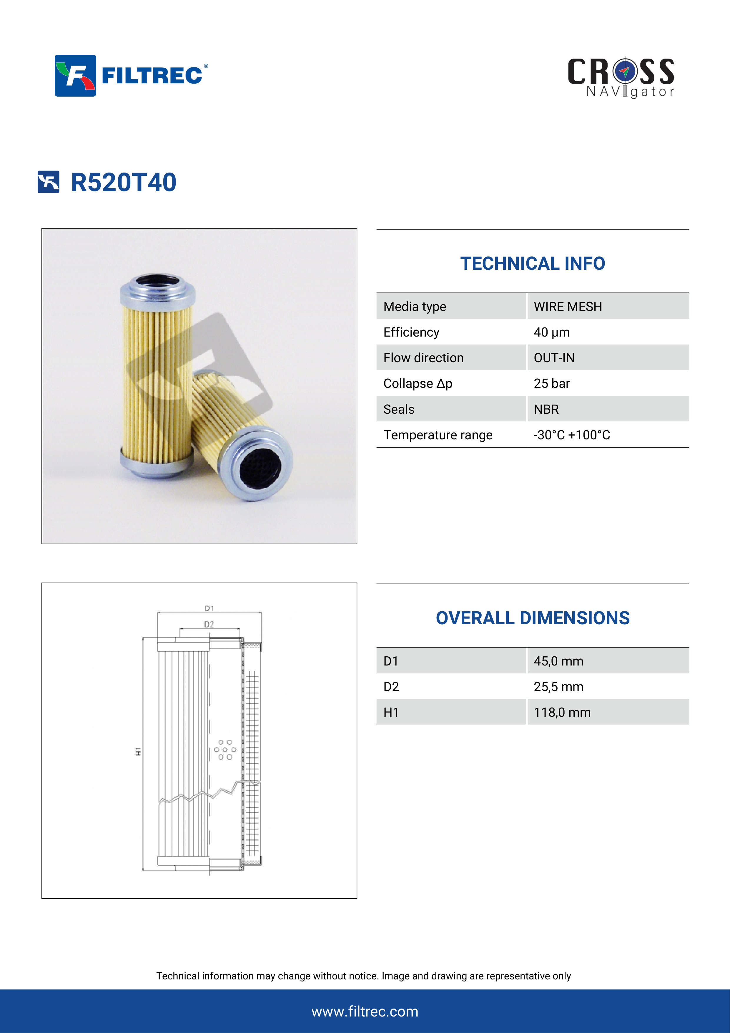 Filtrec R520T40 Replaces the Filtrec R5-20T40