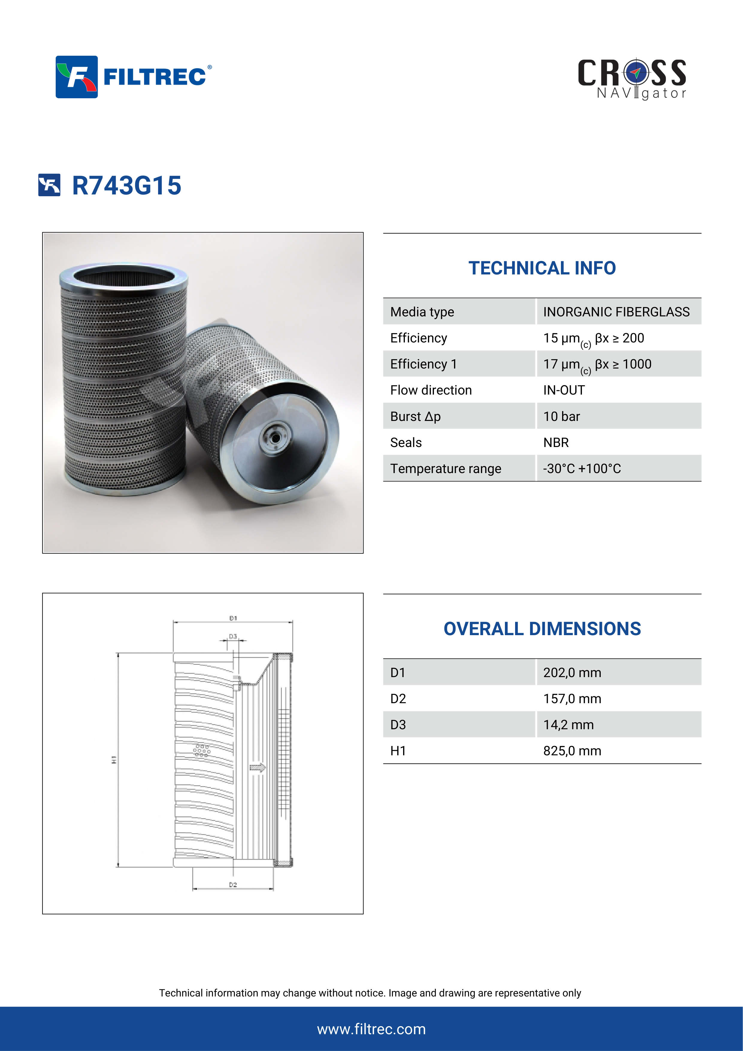 Genuine Filtrec R743G15. This Filtrec element is designed to meet or exceed the quality and performance of brand OEM’s ensuring superior filtration performance and long-lasting durability.