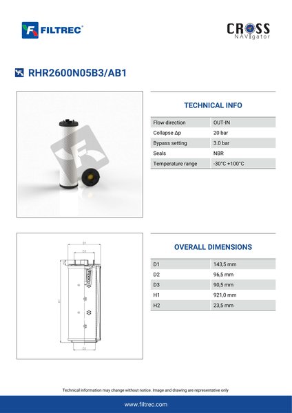 The efficiency of the element is shown using the Micron (µ) and Beta (β) ratings. The micron rating indicates the size of the particle being filtered and the beta rating the efficiency, calculated as 1/β.