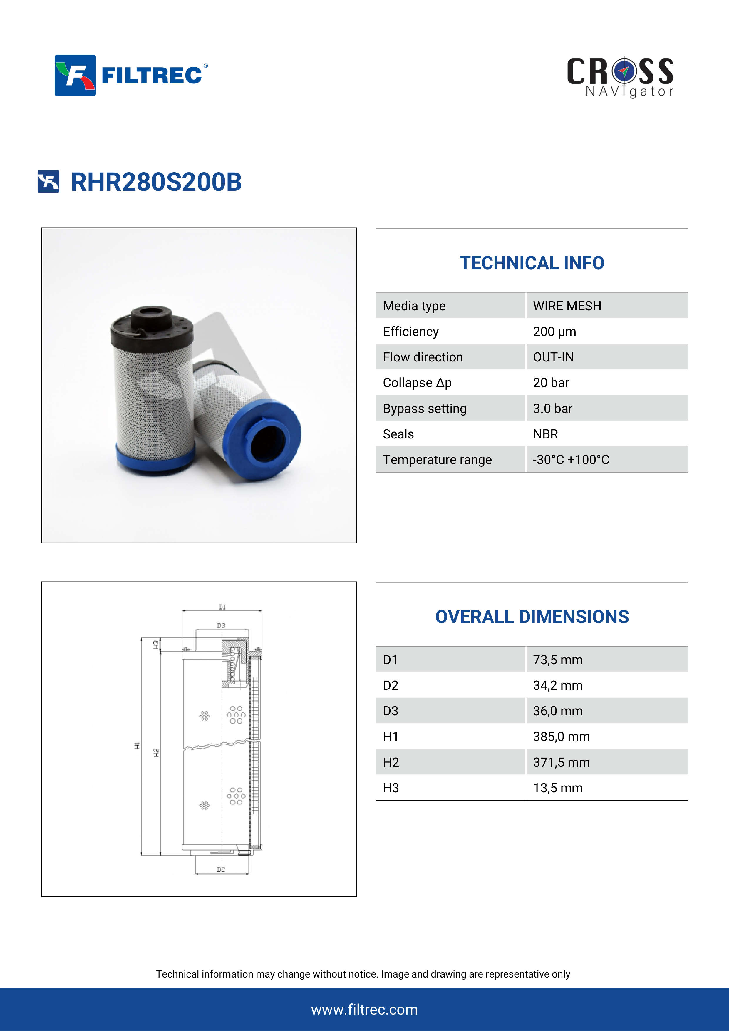 Filtrec RHR280S200B Replaces the Stauff RE125S200B