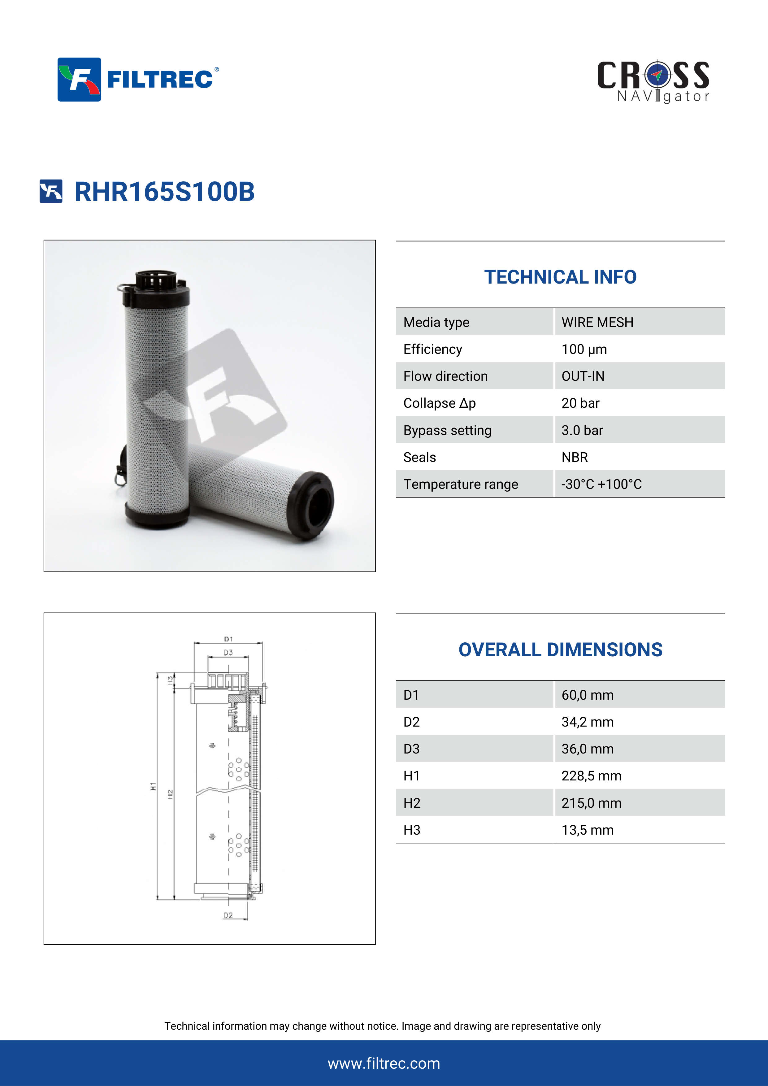 Filtrec RHR165S100B Replaces the Filtrec RHR165S100B3/AB1