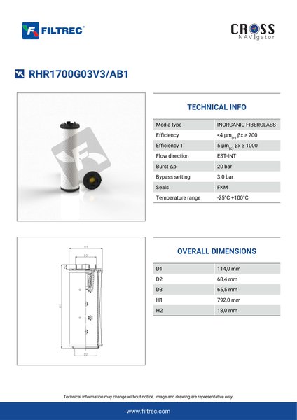 The efficiency of the element is shown using the Micron (µ) and Beta (β) ratings. The micron rating indicates the size of the particle being filtered and the beta rating the efficiency, calculated as 1/β.