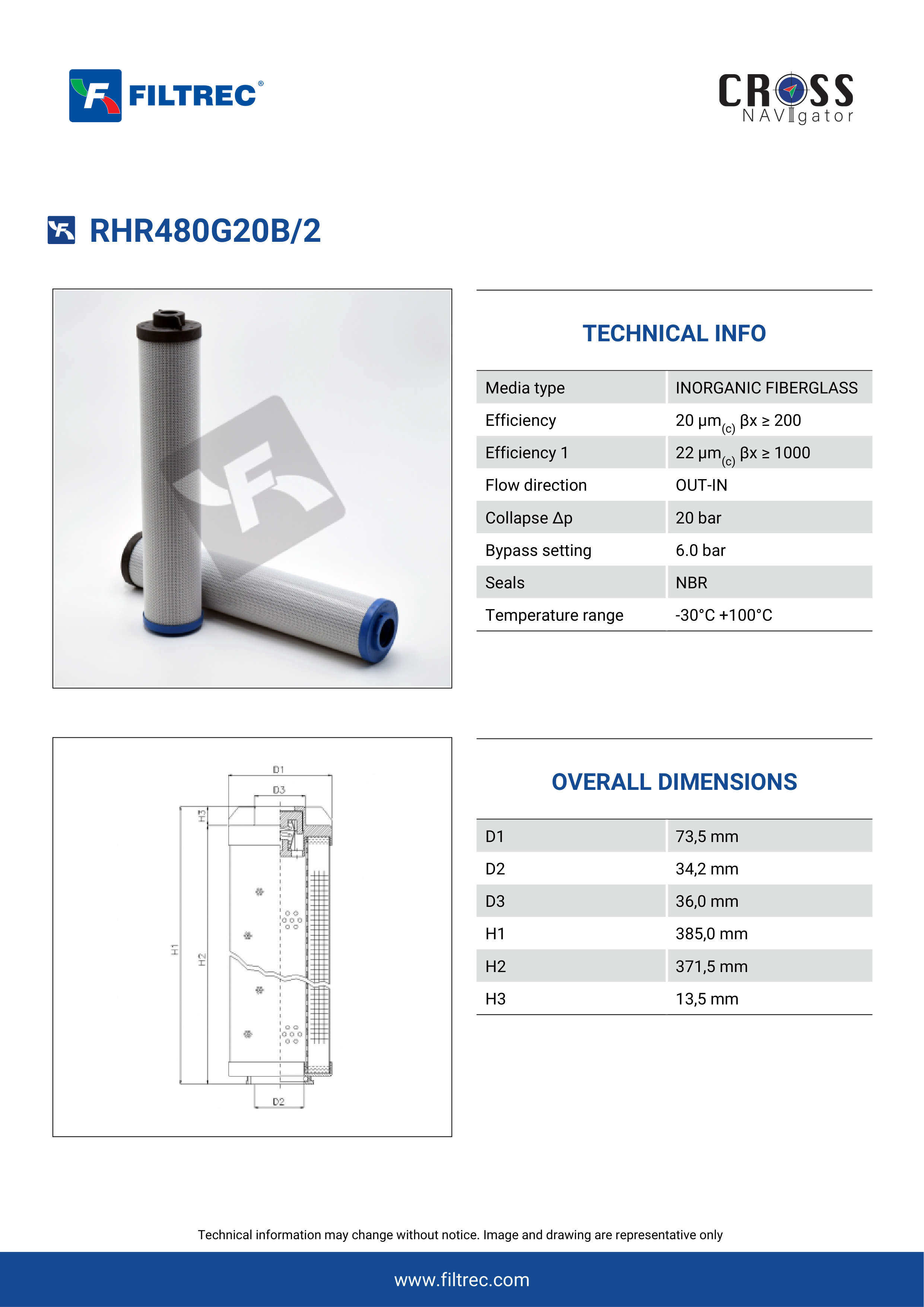 The efficiency of the element is shown using the Micron (µ) and Beta (β) ratings. The micron rating indicates the size of the particle being filtered and the beta rating the efficiency, calculated as 1/β.