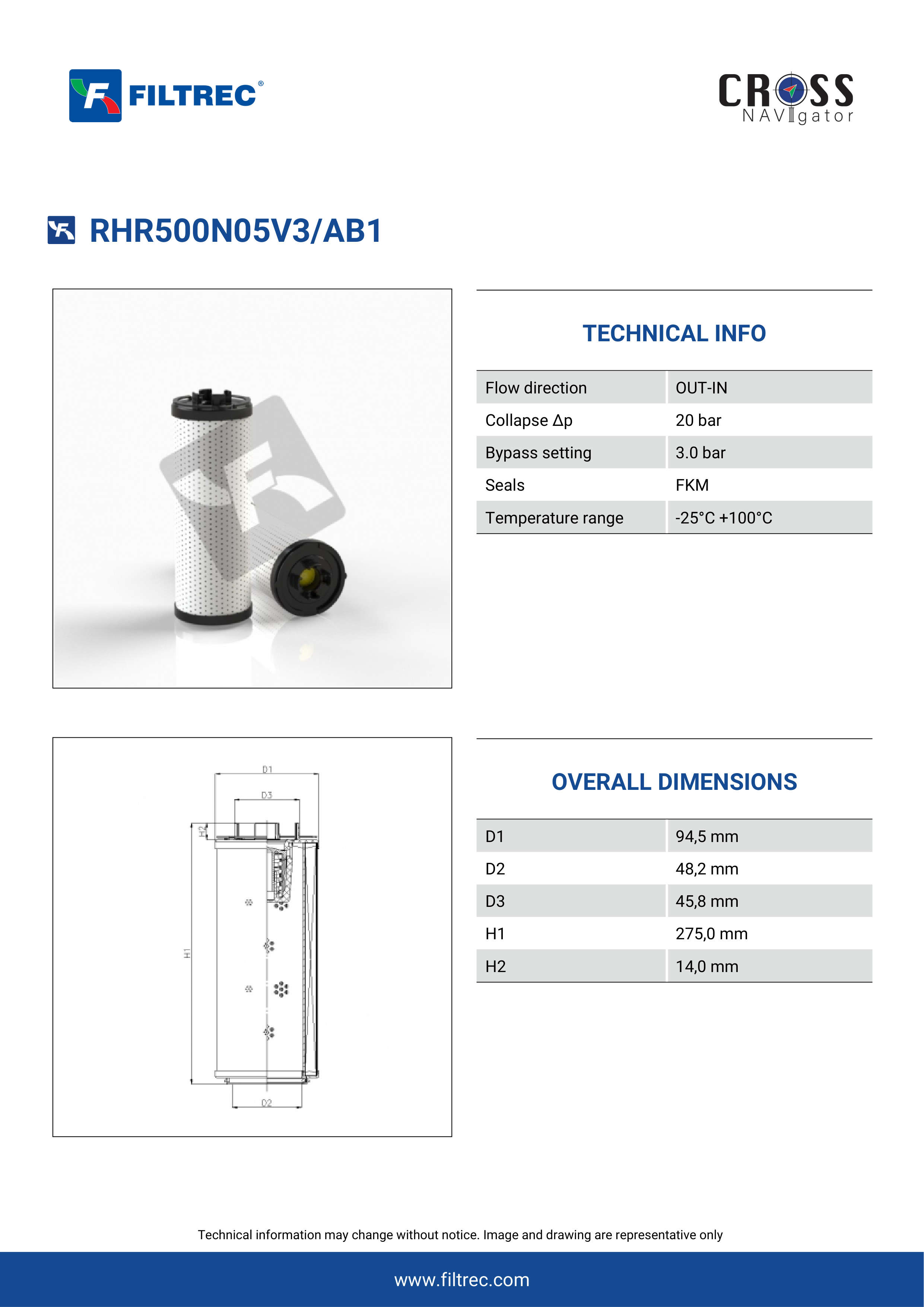 Genuine Filtrec RHR500N05V3/AB1. This Filtrec element is designed to meet or exceed the quality and performance of brand OEM’s ensuring superior filtration performance and long-lasting durability.Engineered with their high performance media and a durable design, the RHR500N05V3/AB1 provides reliable and consistent performance over its lifespan, even in harsh operating environments. When you order from FilterFinder, you can trust that you are getting a reliable and high-quality replacement filter that will keep your system running smoothly.