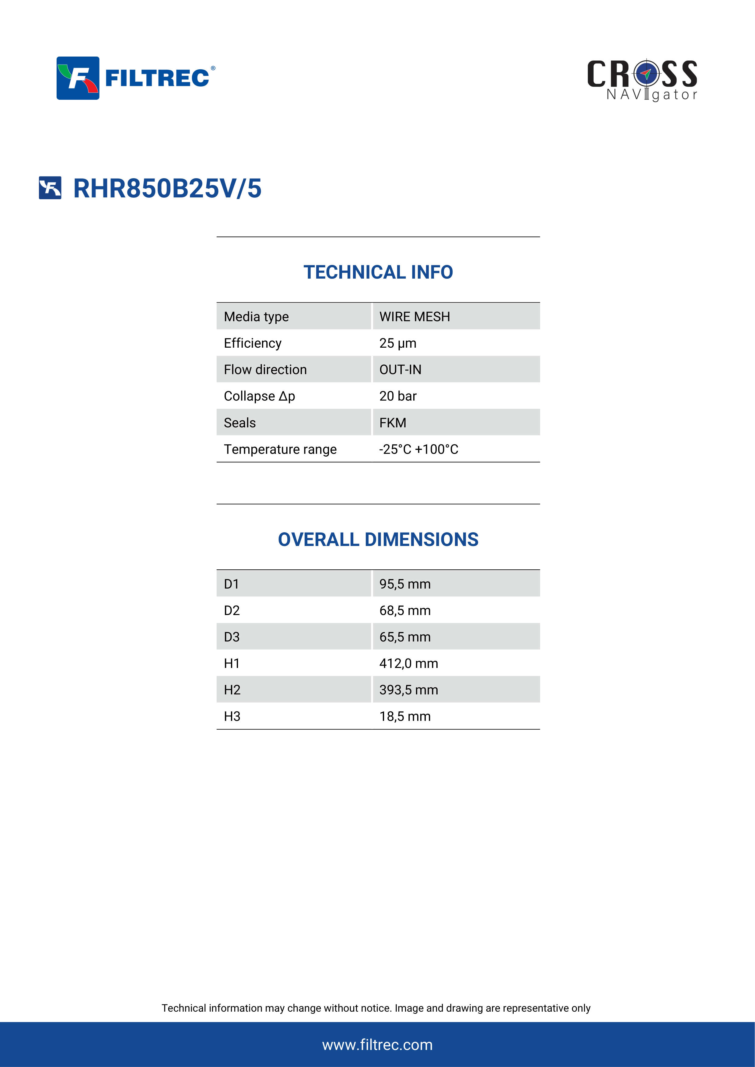The efficiency of the element is shown using the Micron (µ) and Beta (β) ratings. The micron rating indicates the size of the particle being filtered and the beta rating the efficiency, calculated as 1/β.