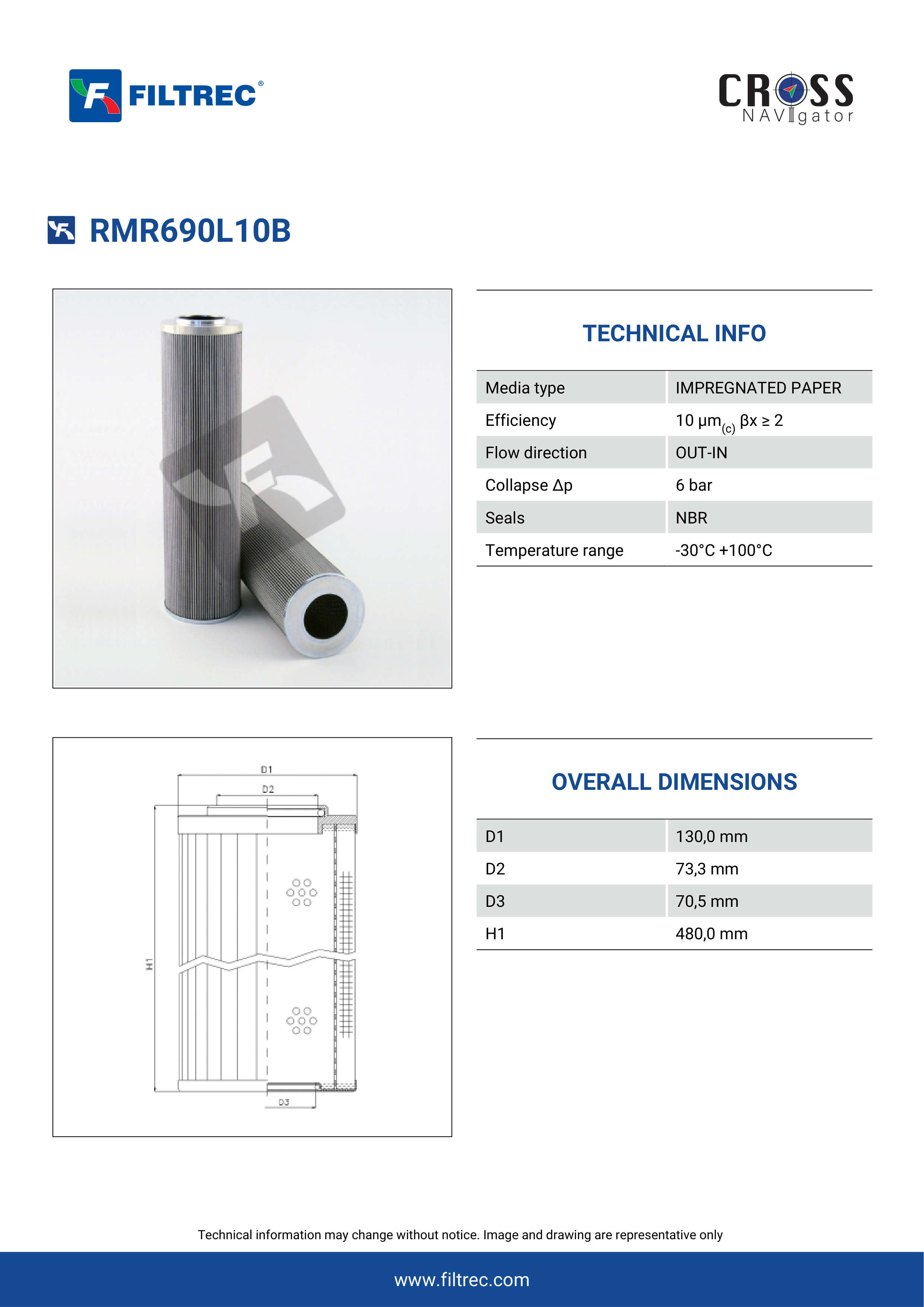 Genuine Filtrec RMR690L10B. This Filtrec element is designed to meet or exceed the quality and performance of brand OEM’s ensuring superior filtration performance and long-lasting durability.Engineered with their high performance media and a durable design, the RMR690L10B provides reliable and consistent performance over its lifespan, even in harsh operating environments. When you order from FilterFinder, you can trust that you are getting a reliable and high-quality replacement filter that will keep your system running smoothly.